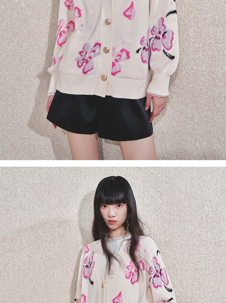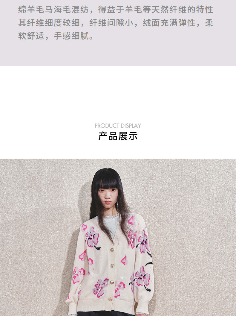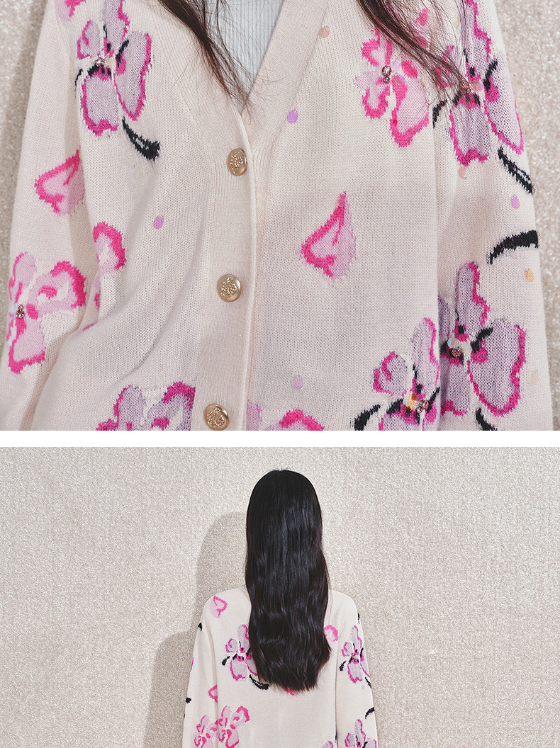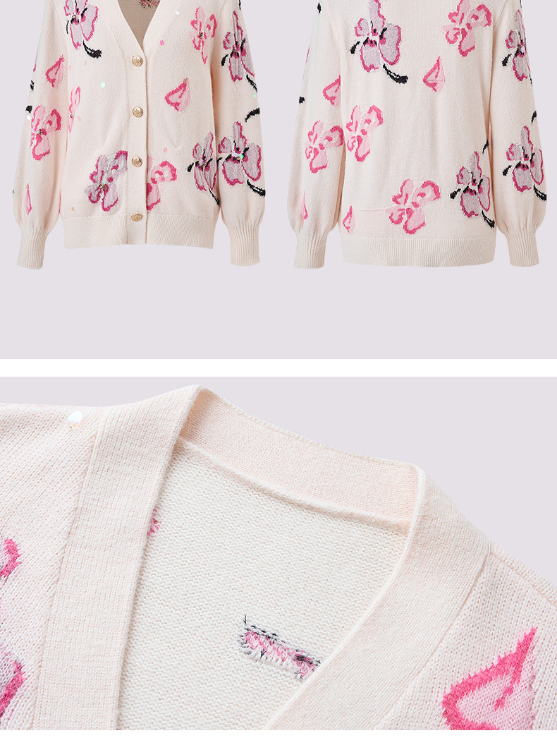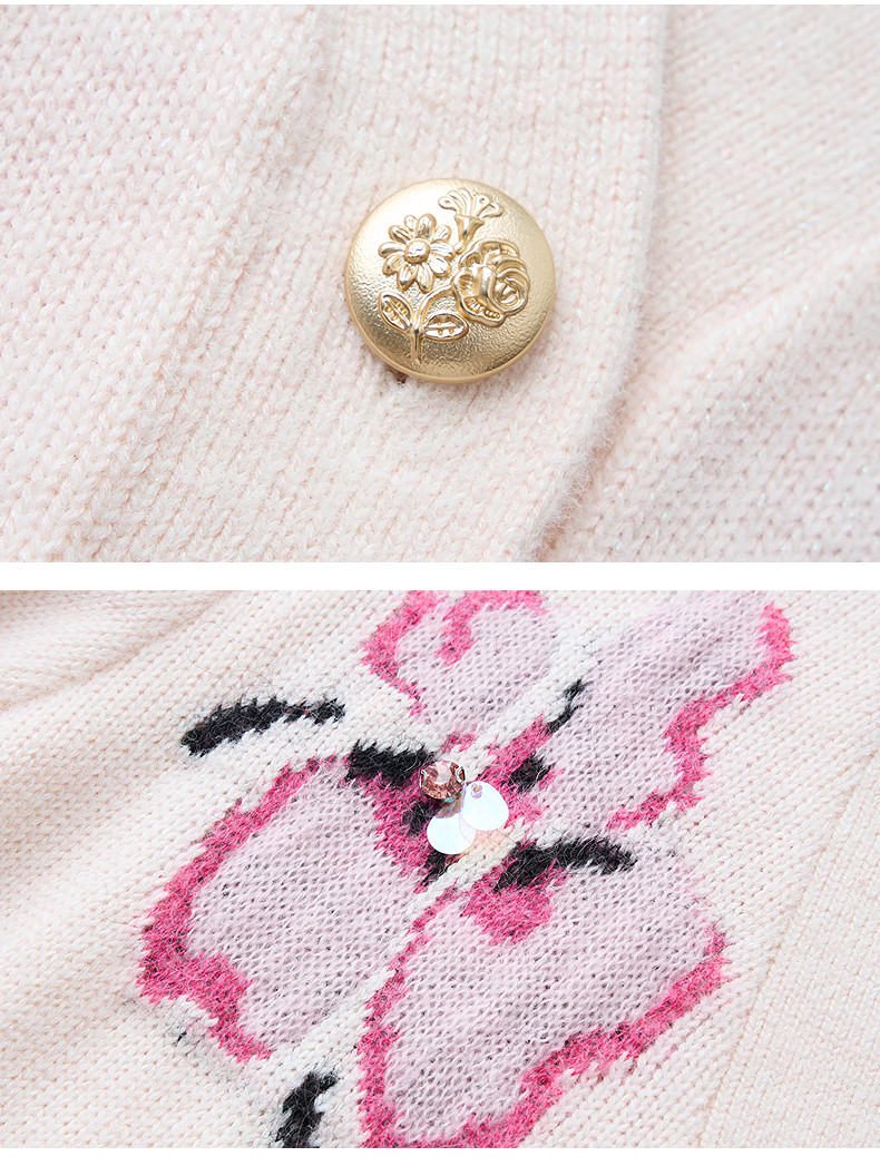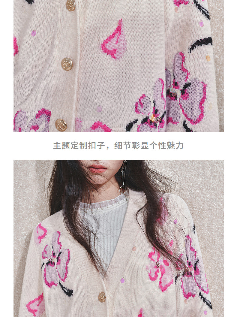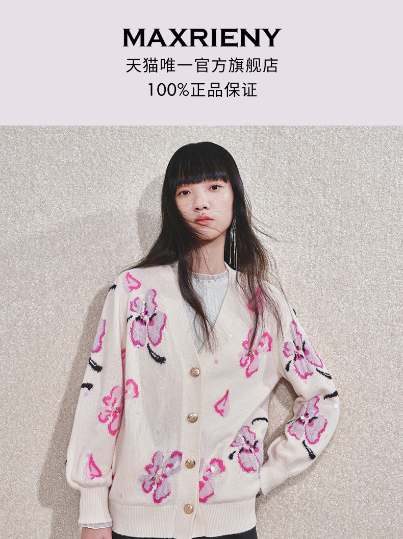 玛克门店发货:MAXRIENY甜美钉珠开衫毛衣(货号:MC85JA784)