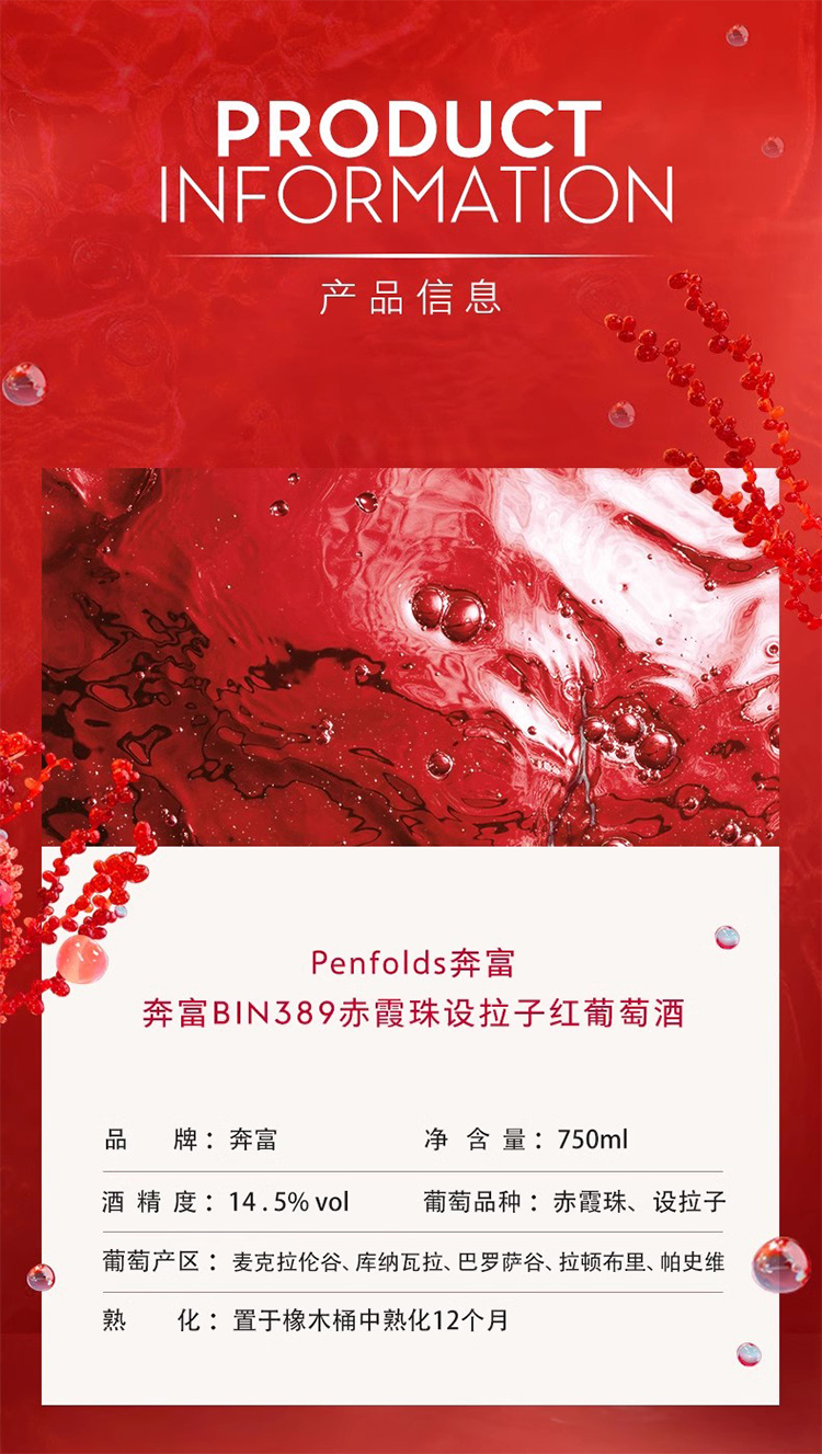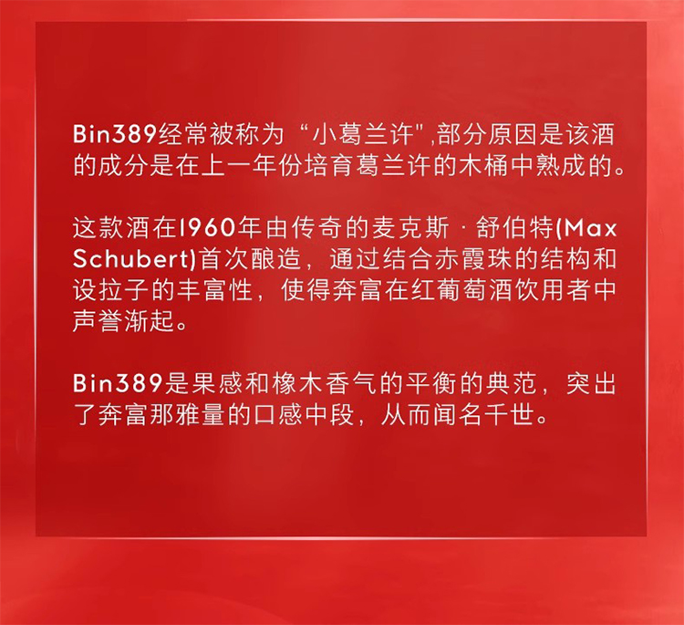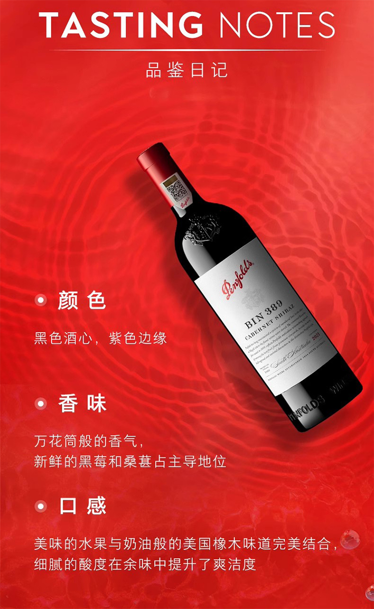 【正品行货带码】奔富Bin389赤霞珠设拉子红葡萄酒