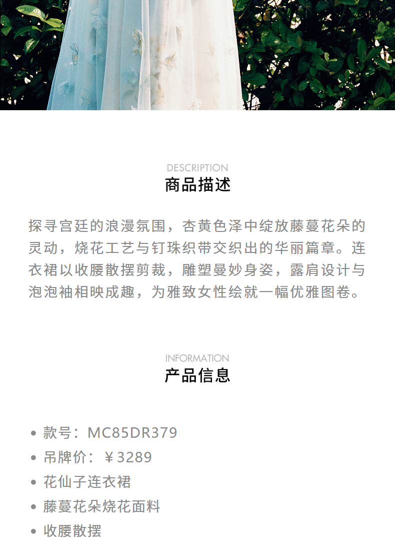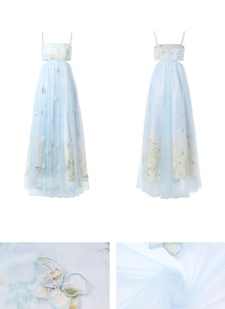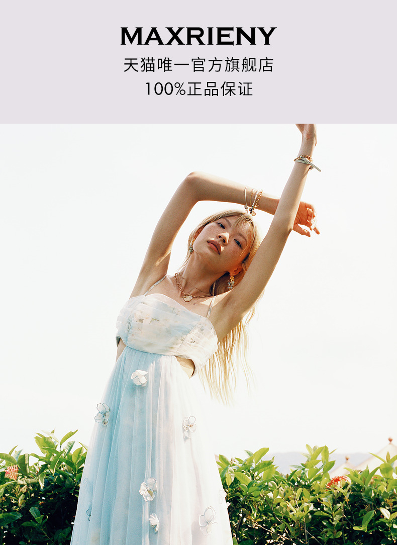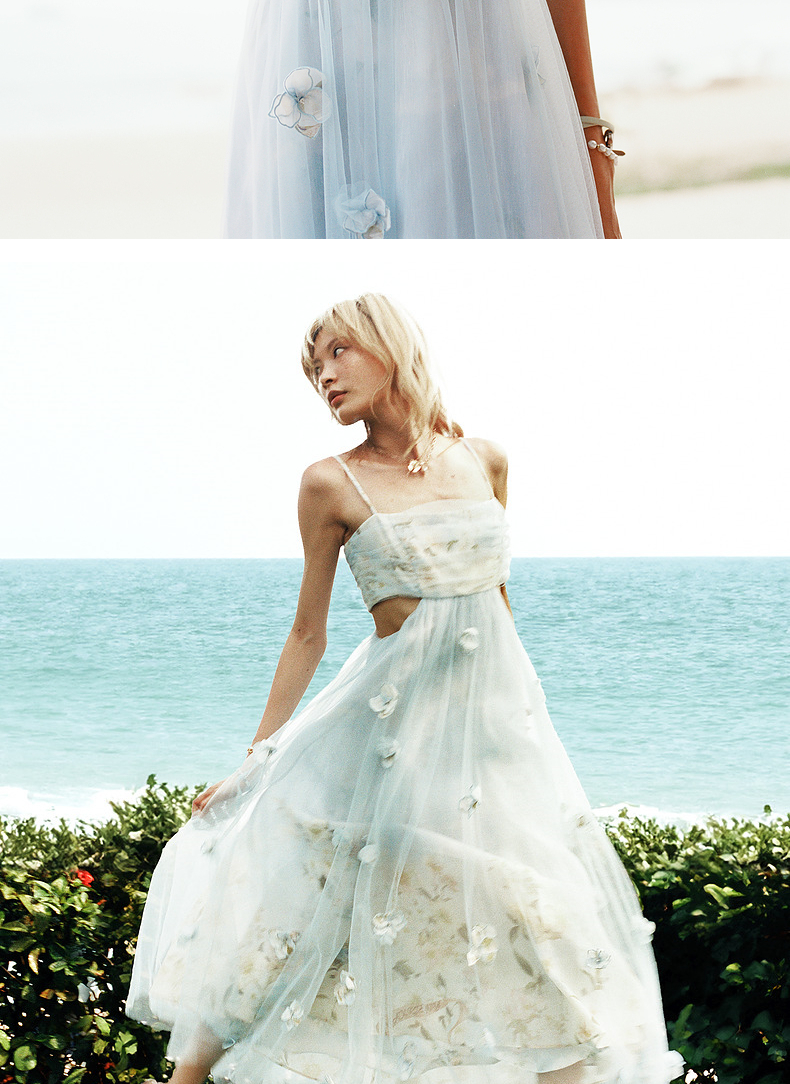 玛克门店发货:MAXRIENY海盐蓝立体花朵裙立体手工花朵(货号:MC85DR379)