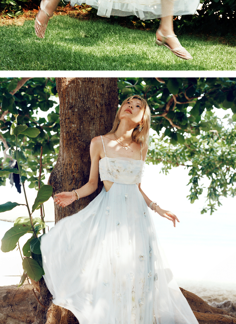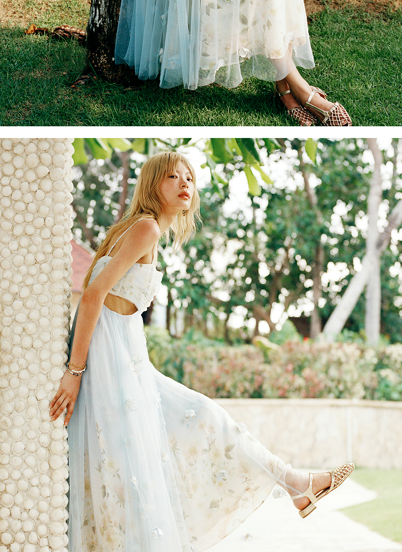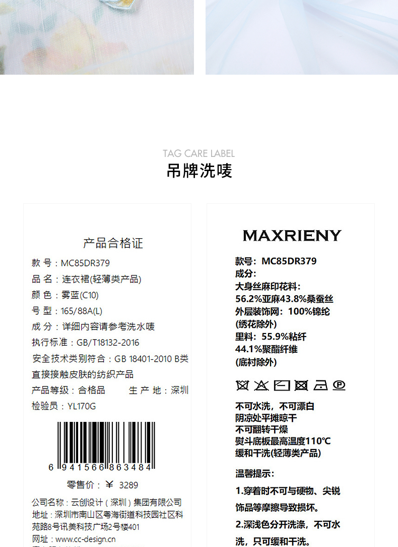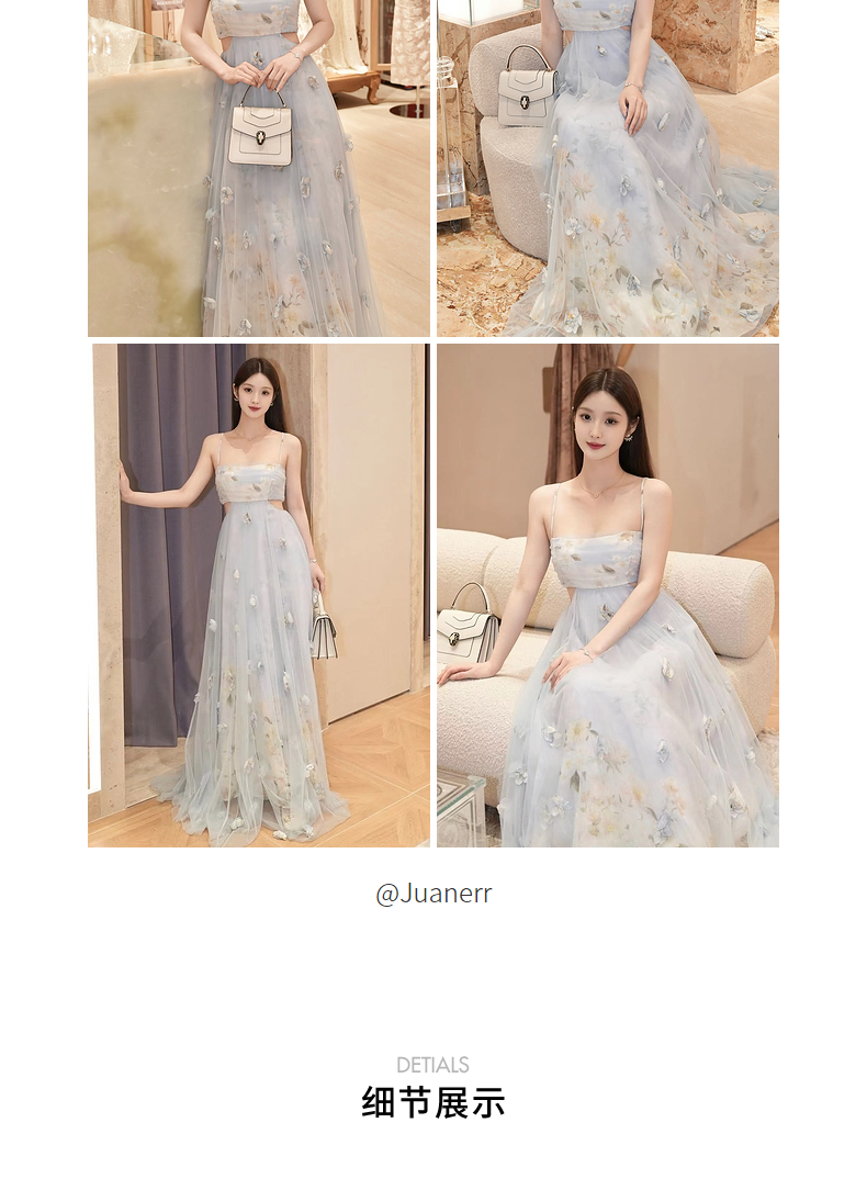 玛克门店发货:MAXRIENY海盐蓝立体花朵裙立体手工花朵(货号:MC85DR379)