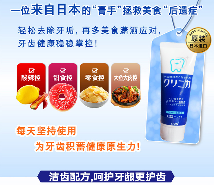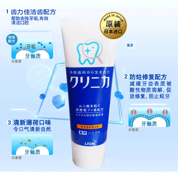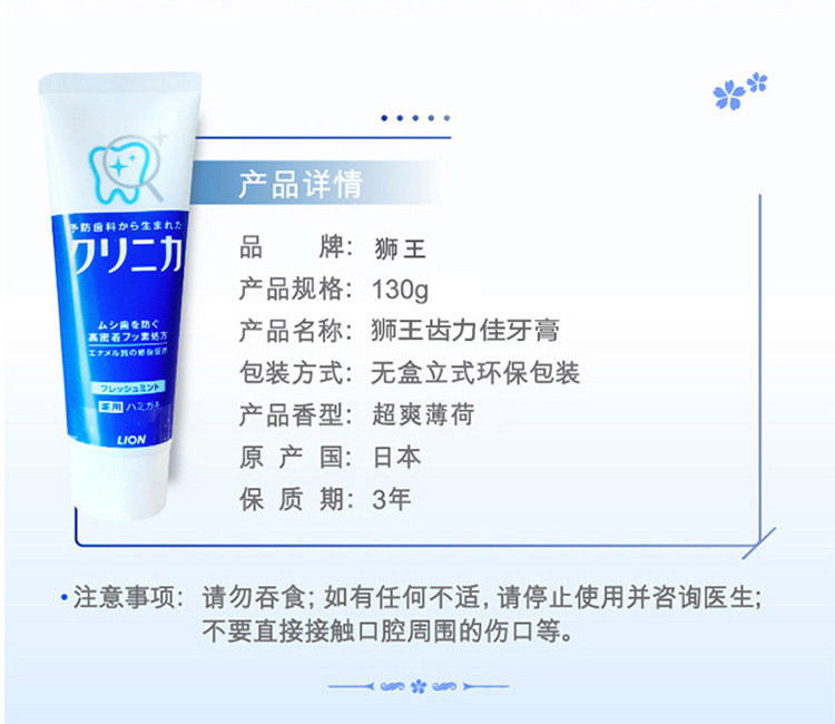 【保税仓】LION狮王齿力佳洁净防护立式牙膏清新薄荷130g