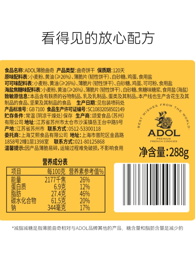 ADOL挚爱礼盒 (黄油薄脆曲奇288g*1罐 +艾许黄油蕾丝曲奇200g*1罐 套餐)