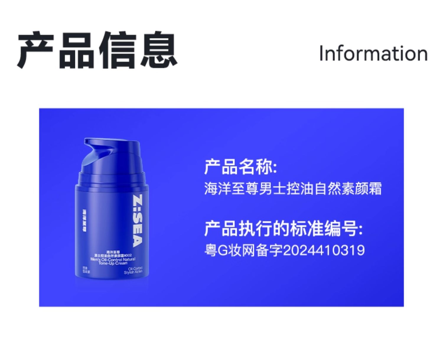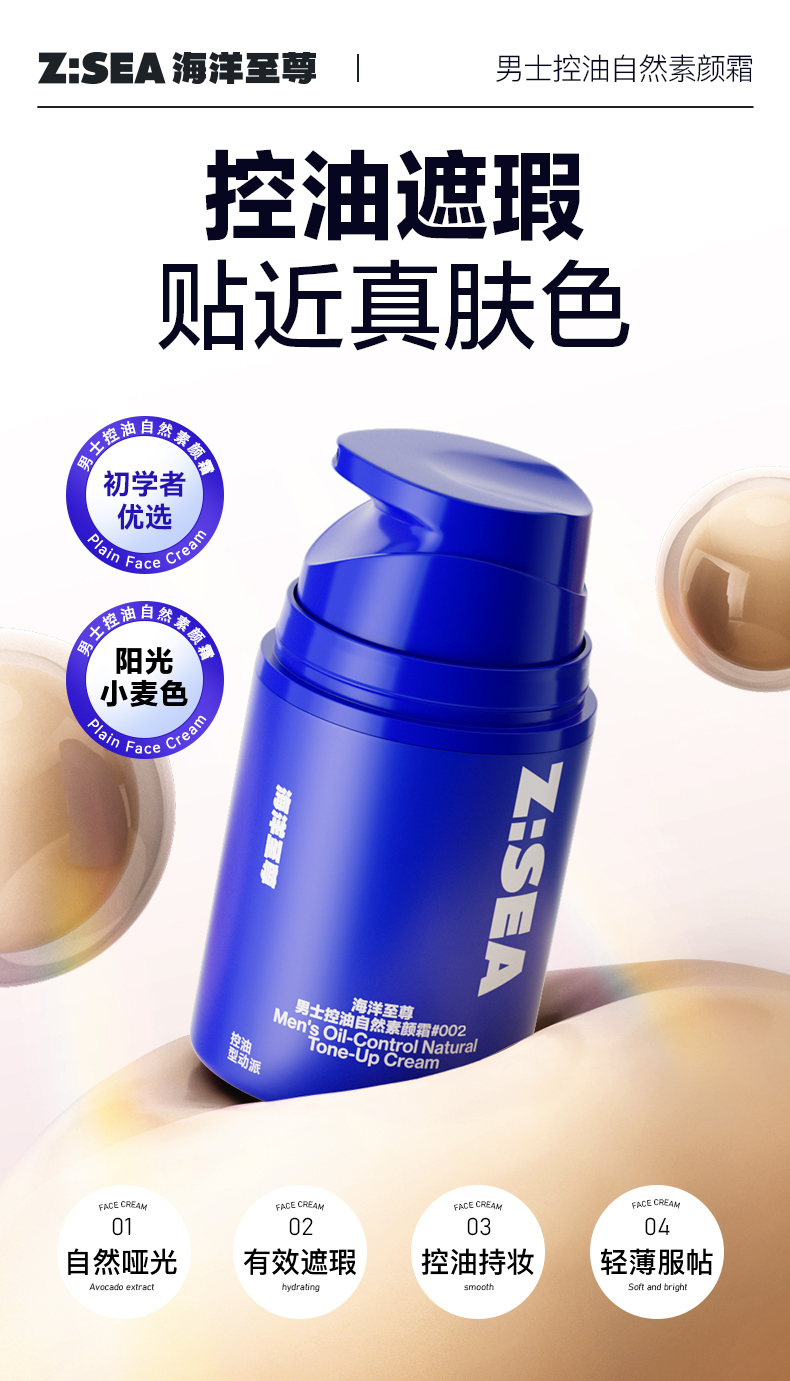 Z:SEA海洋至尊男士控油自然素颜霜#002阳光小麦(50g)