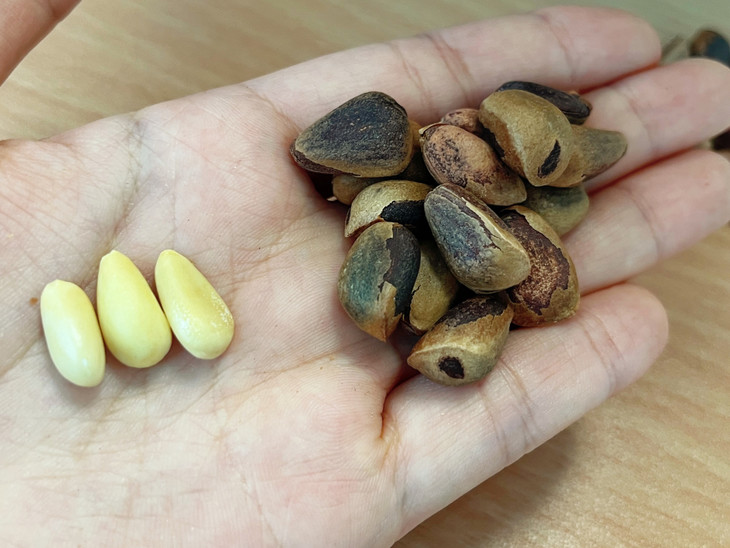 每颗松子树的树龄都在20年以上。松塔个头非常大,甚至比成年人的手掌还要大!松塔里面的松子又需要2年的成熟期,十分珍贵。