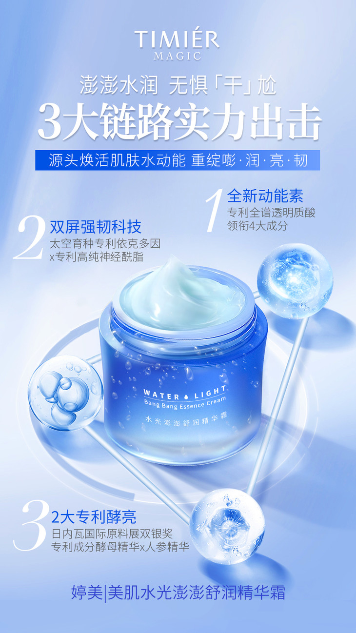 (抹动能水光霜,唤醒细胞水动能,绽放澎润水光肌)