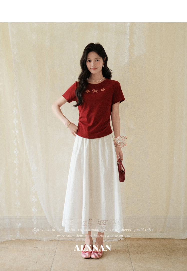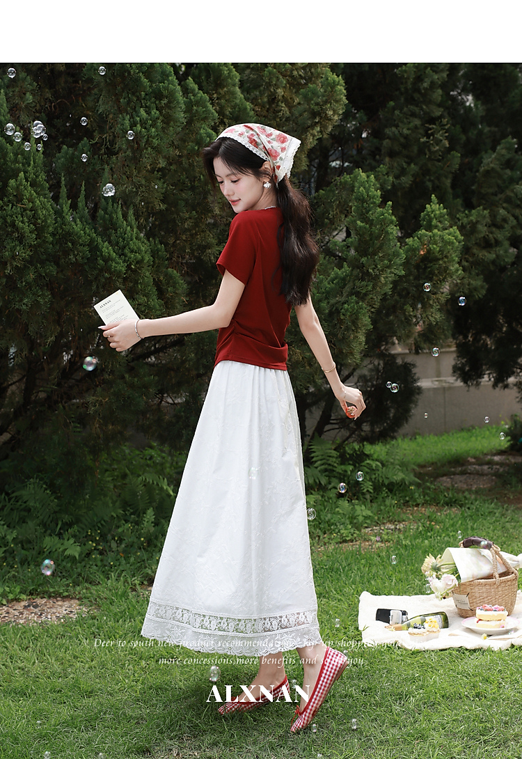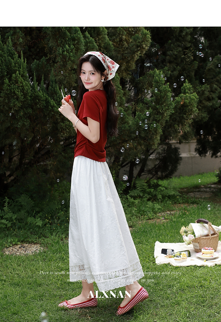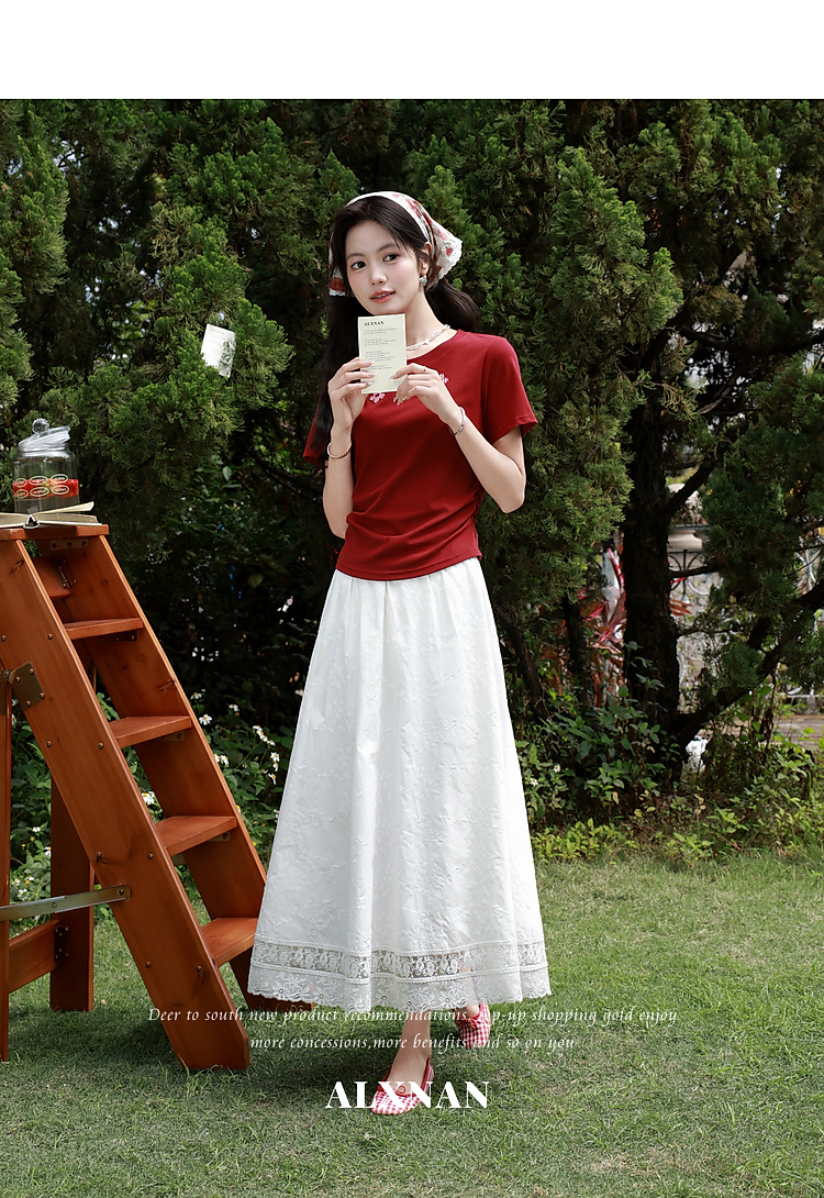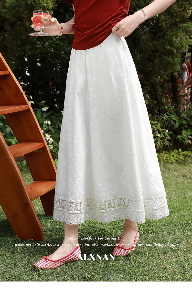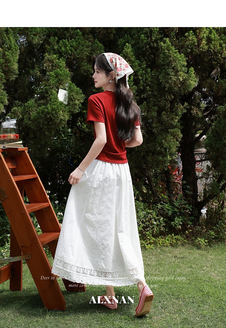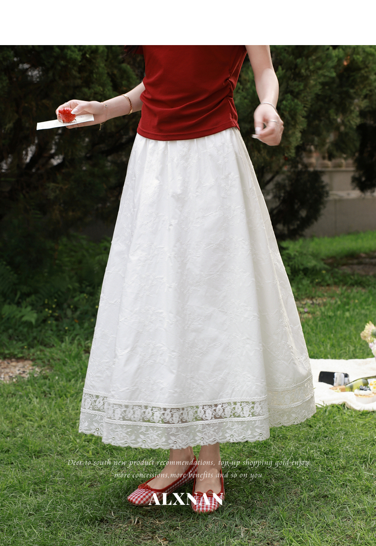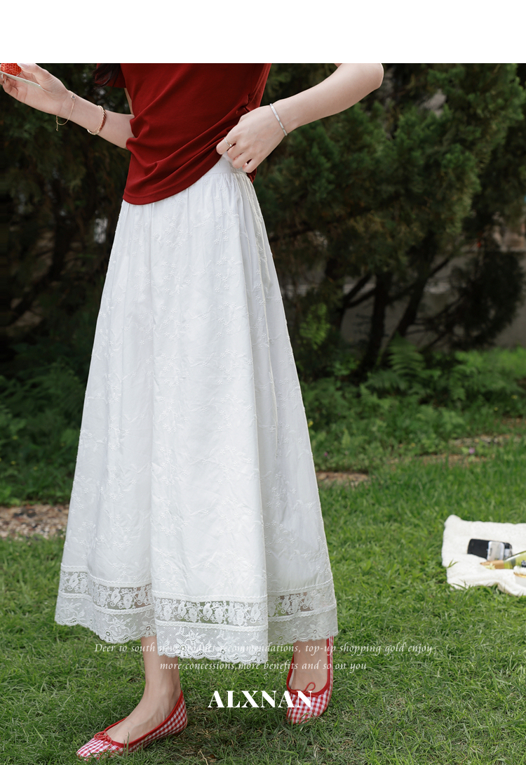 鹿向南【0331/20:00新品前1小时5折限量100件】米白色蕾丝半身裙