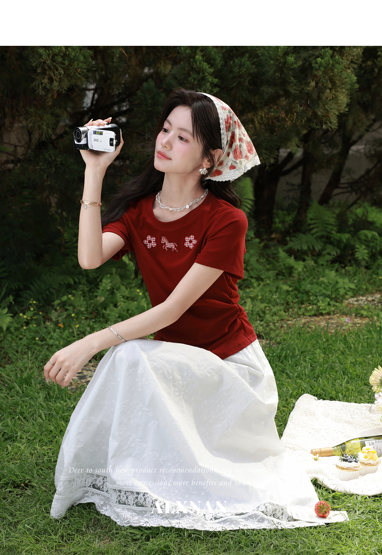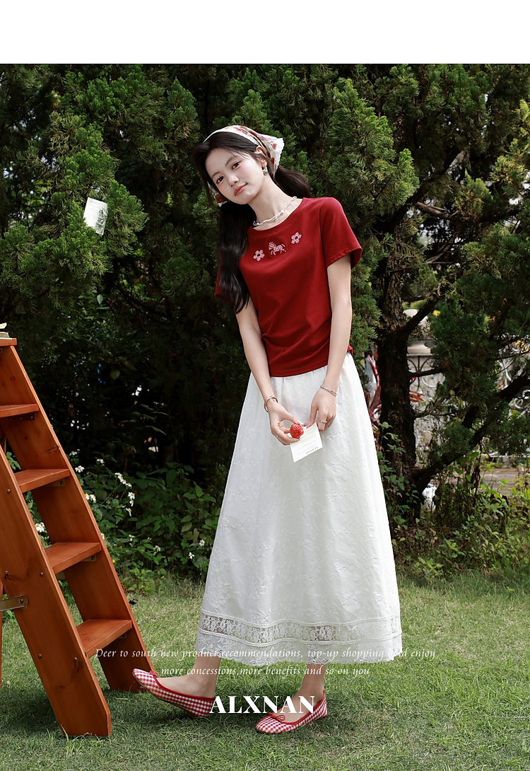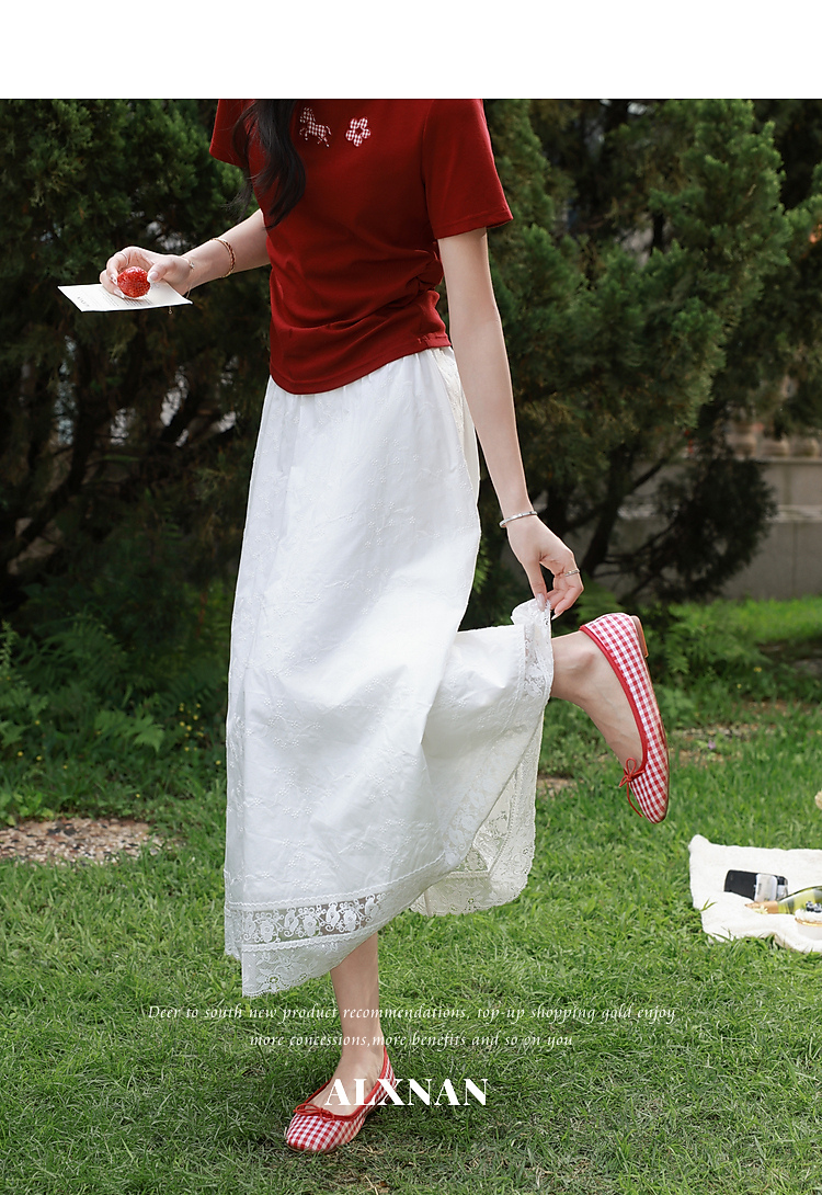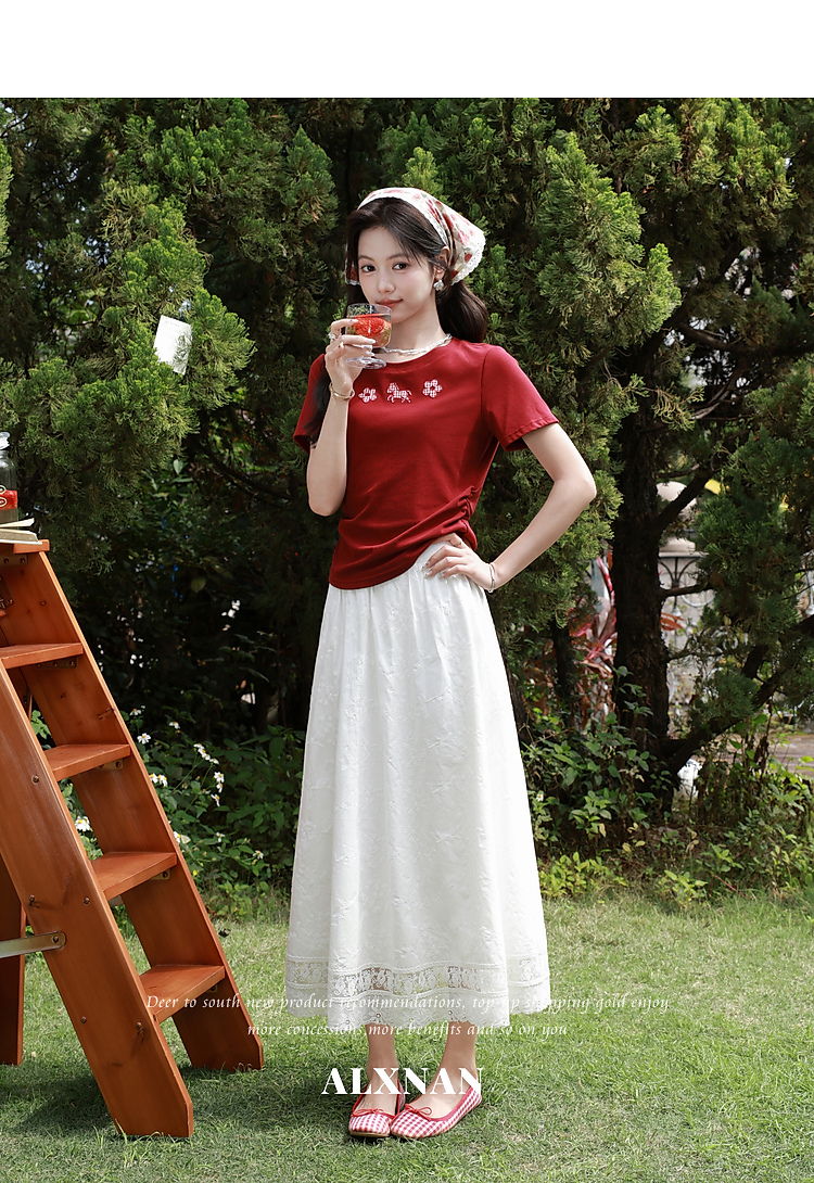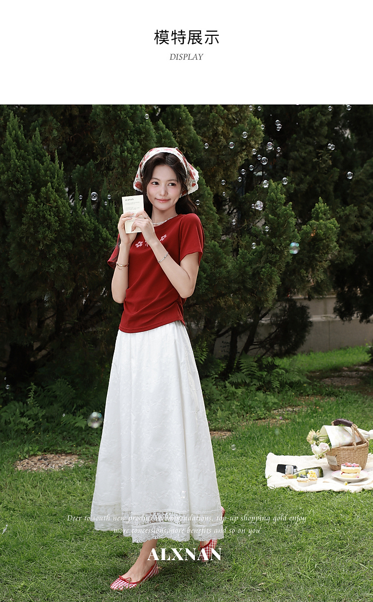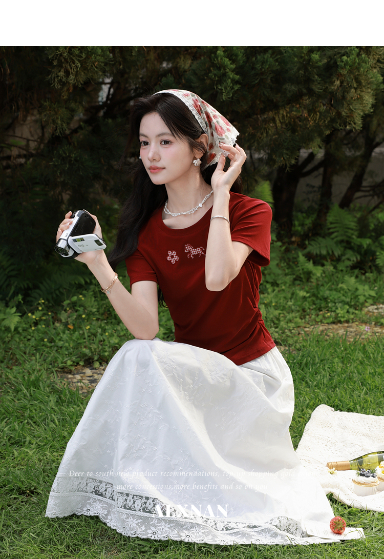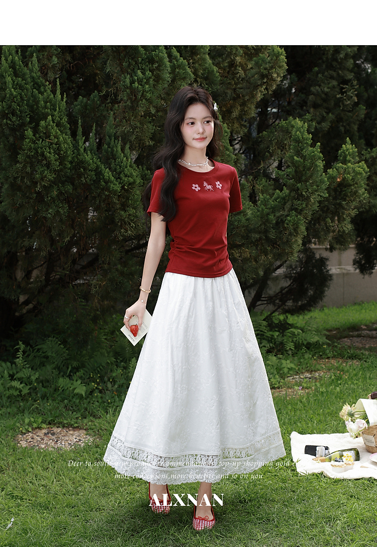 鹿向南【0331/20:00新品前1小时5折限量100件】米白色蕾丝半身裙