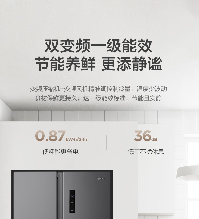 美的(Midea)562升变频对开双开门家用冰箱智能家电风冷无霜BCD-562WKPM(E)