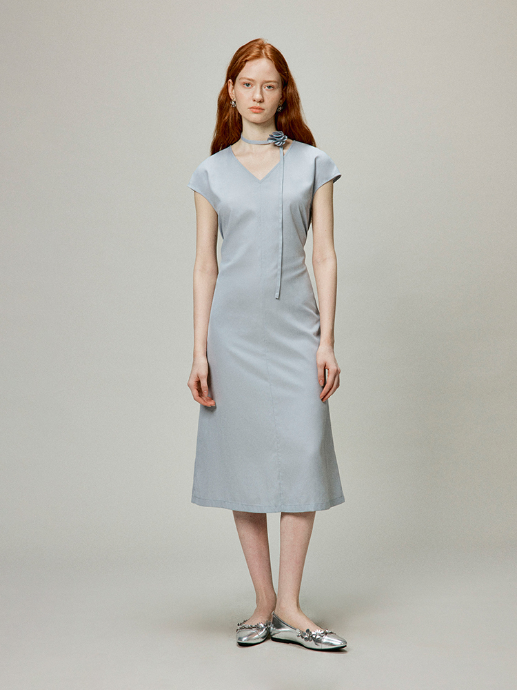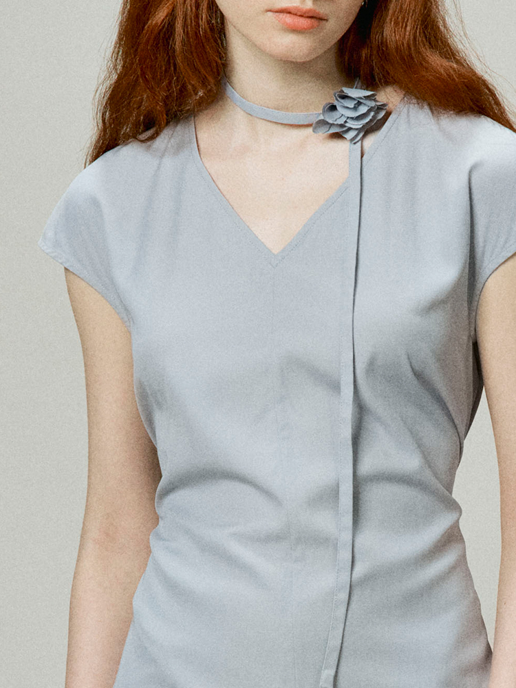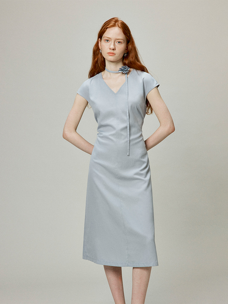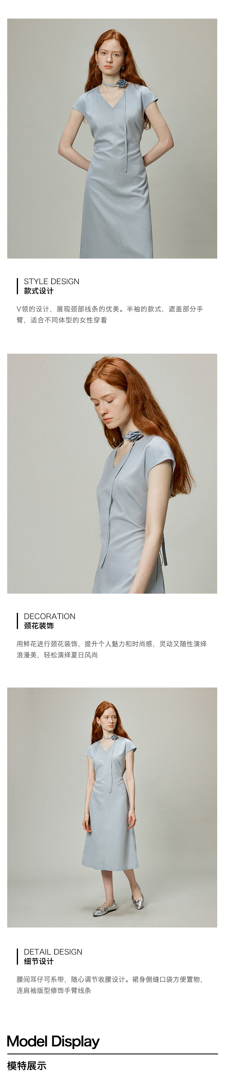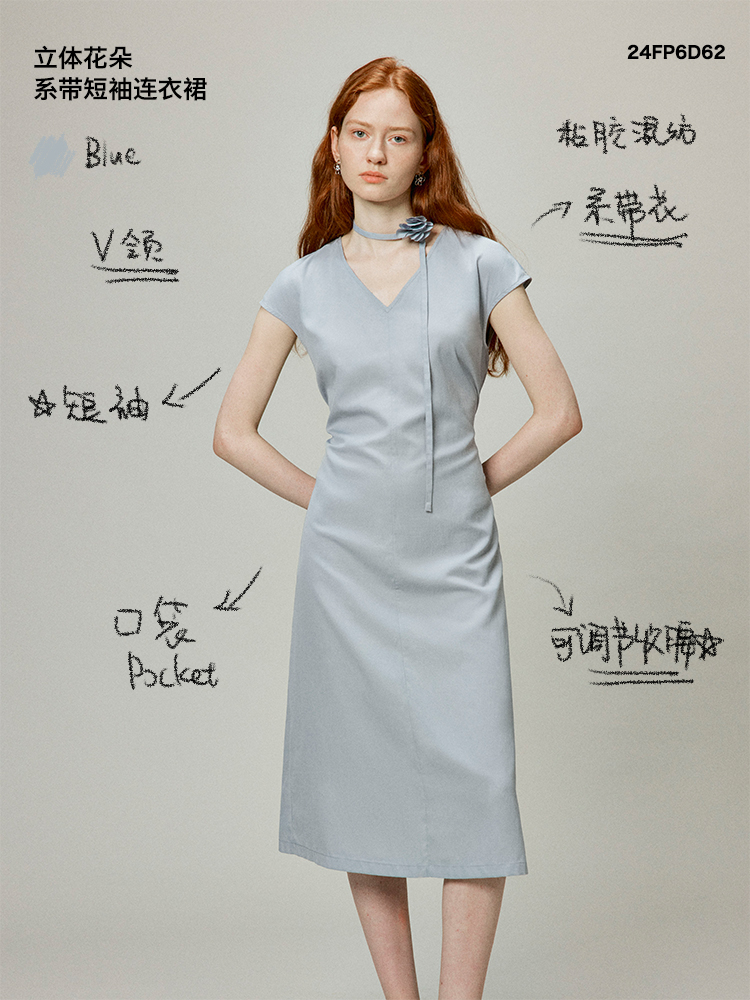 【会员周一口价】ForPoem 现货 24/SS夏季花朵系列立体花朵Choker短袖调节收腰连衣裙