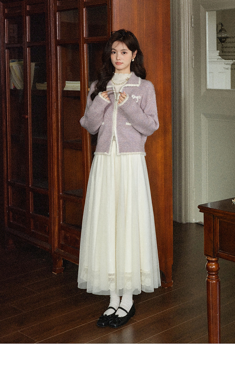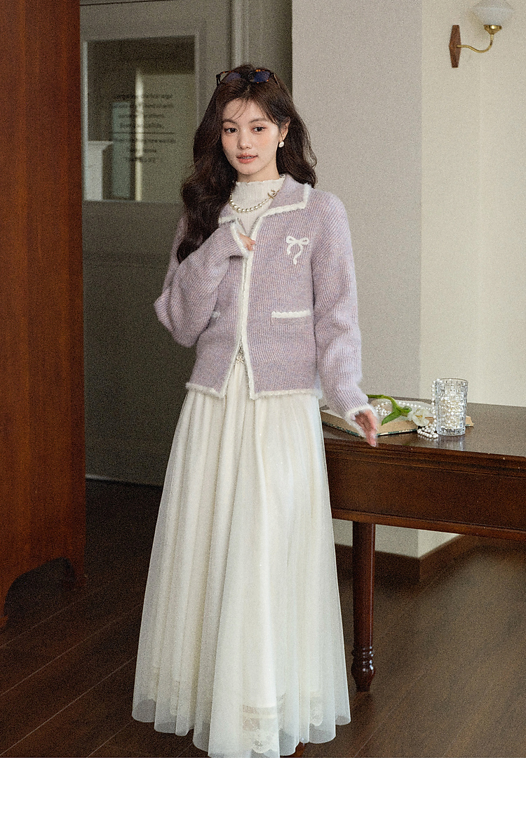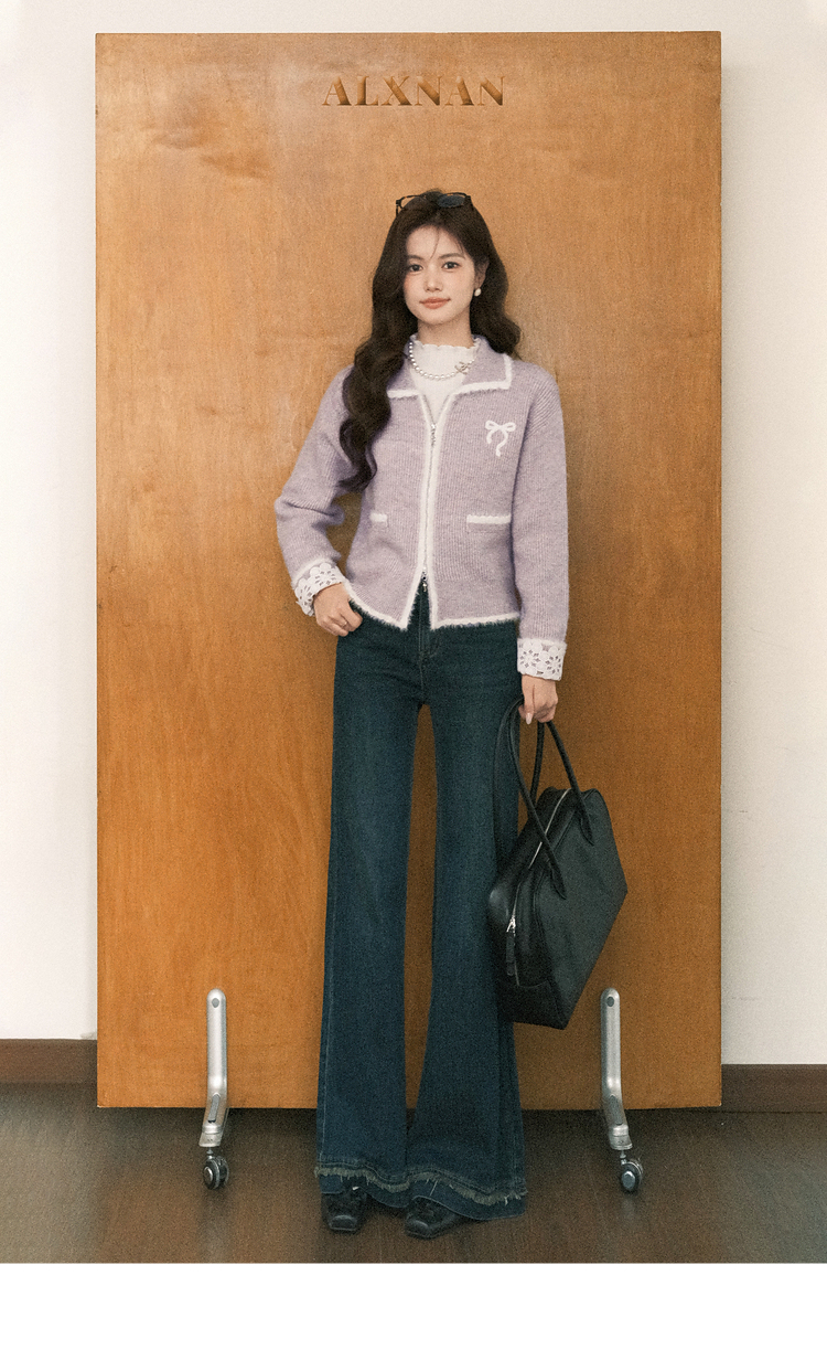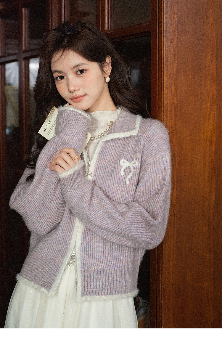 鹿向南「香芋奶酪」紫色长袖针织毛衣女秋冬宽松慵懒叠穿开衫上衣