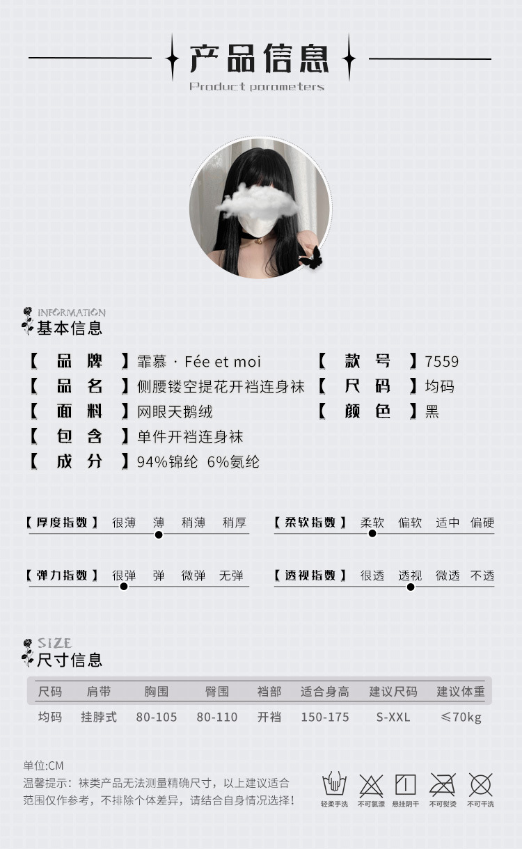 【霏慕】性感情趣镂空连身网袜激情开档诱惑性趣情绪内衣丝袜套装女7559