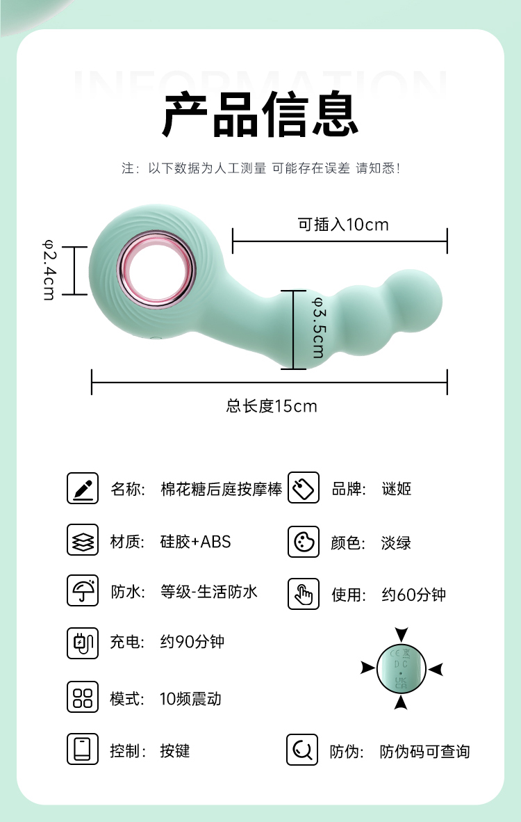 【情趣用品】谜姬 棉花糖按摩棒后庭开发扣环款
