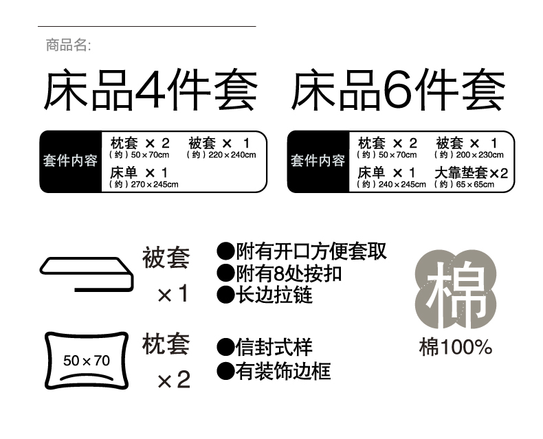 NITORI宜得利家居 床上用品礼盒床品套件全棉刺绣四件套六件套 一眼万年