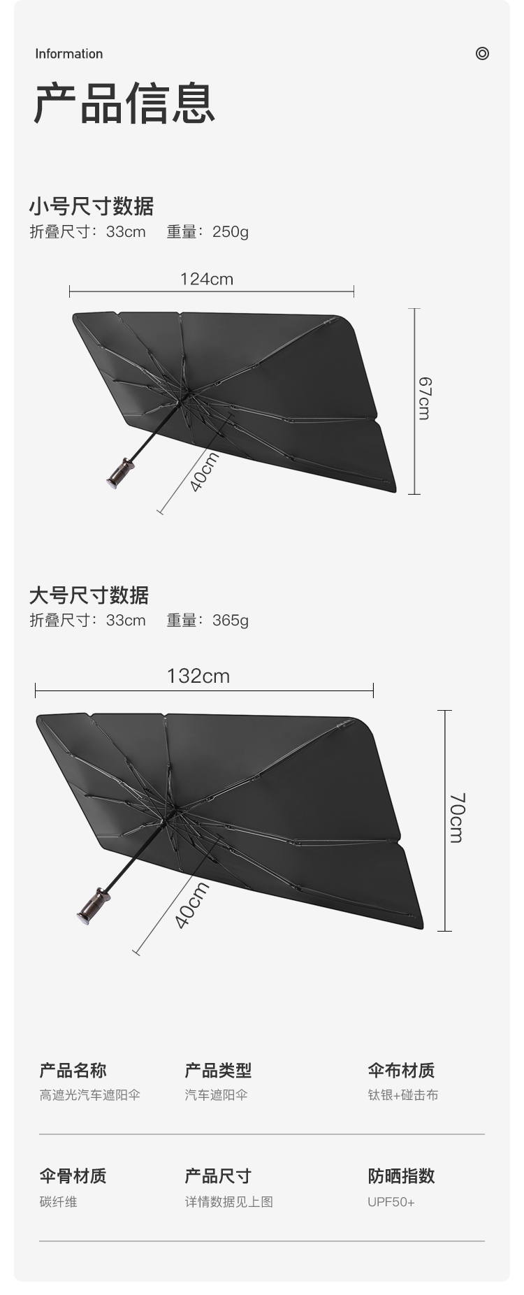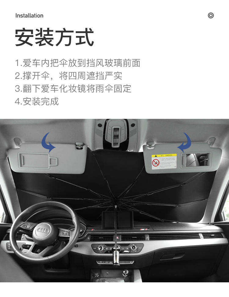 花觉高遮光遮阳伞 内置破窗器 无需安装停车即可撑伞 方便高效耐用的汽车伞
