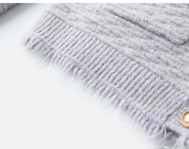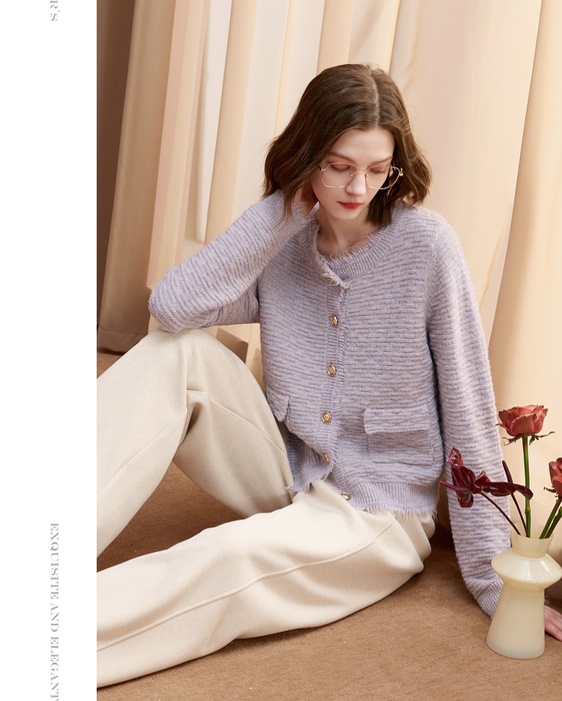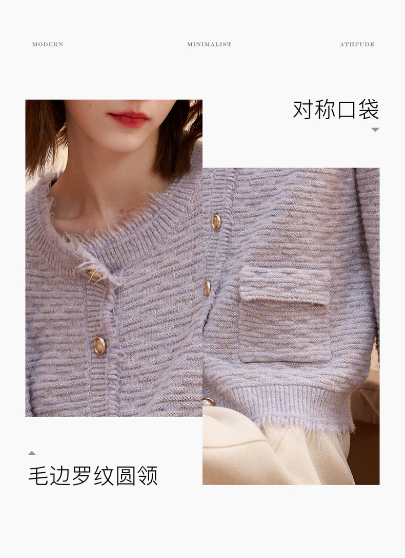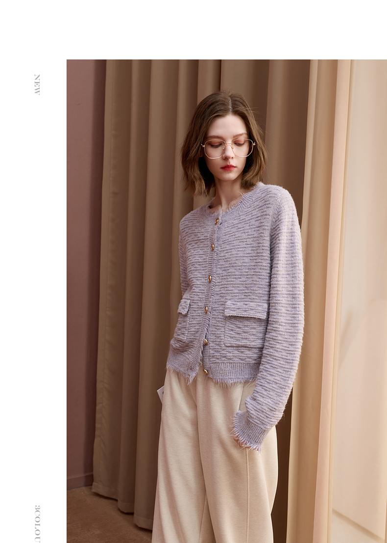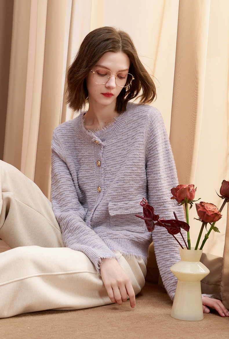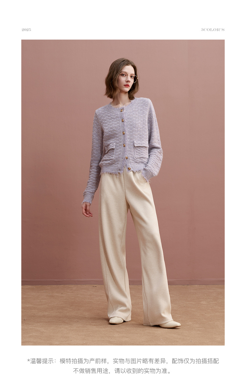 三彩2025冬季新款浪漫香风肌理感针织衫长袖开衫简约毛衫S