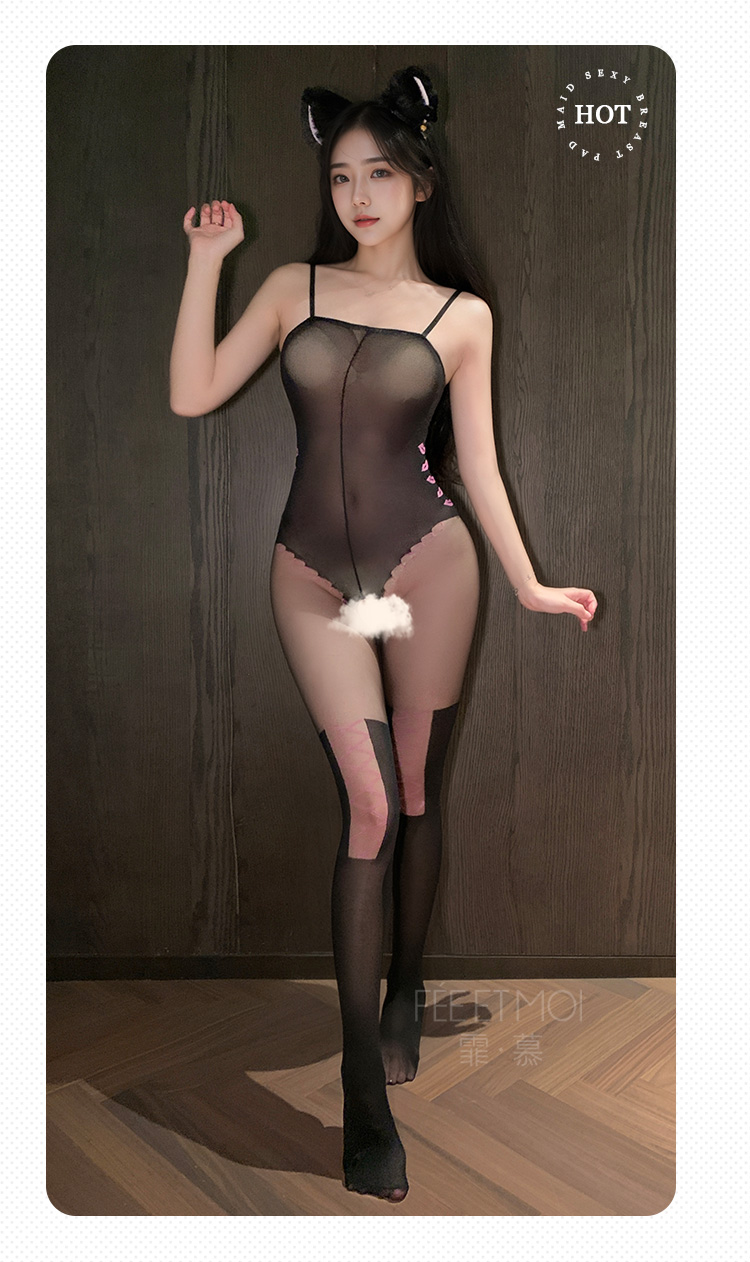 【情趣内衣】霏慕 甜欲机车感开裆连身袜7566