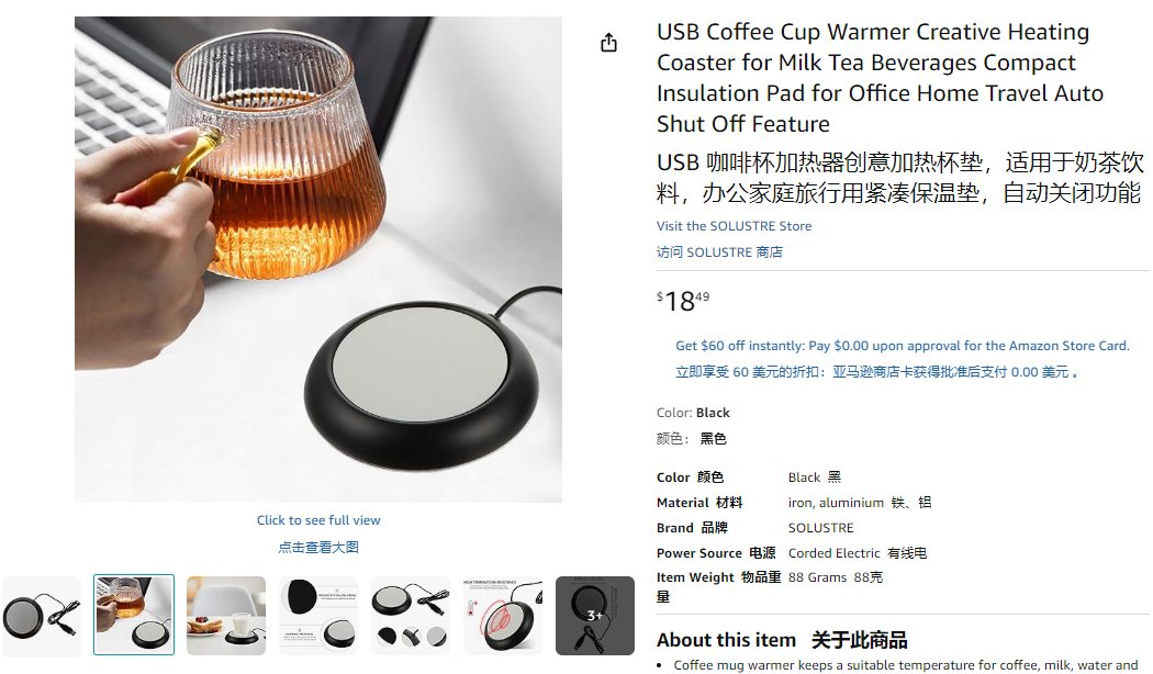 加热器能全天保持适合咖啡、牛奶、水和其他饮料的温度!