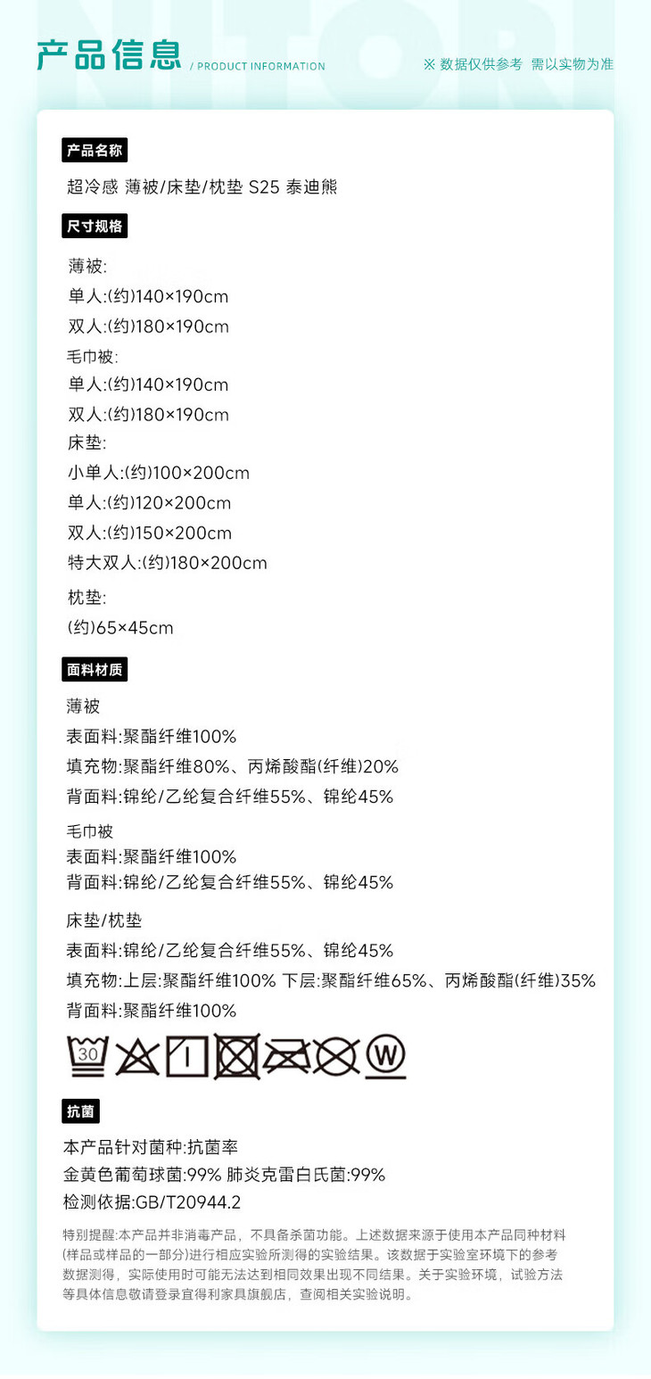 强冷感S25 泰迪熊床品系列 薄被/毛巾被/床垫/枕垫 单人/双人/特大双人