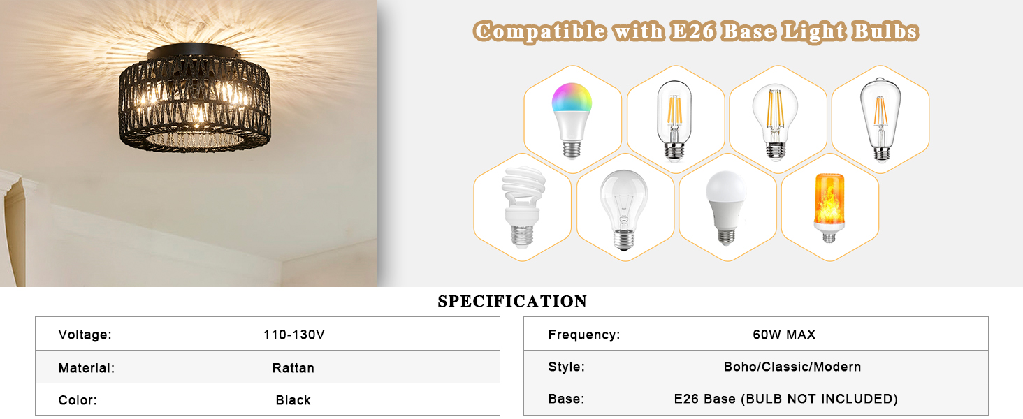 这款吊灯灯罩需搭配3个E26灯座灯泡(最高60W),兼容LED、节能灯、白炽灯和卤素灯泡(灯泡需另购)。天花灯具包含全套安装配件,组装便捷使用简单,让生活更轻松。