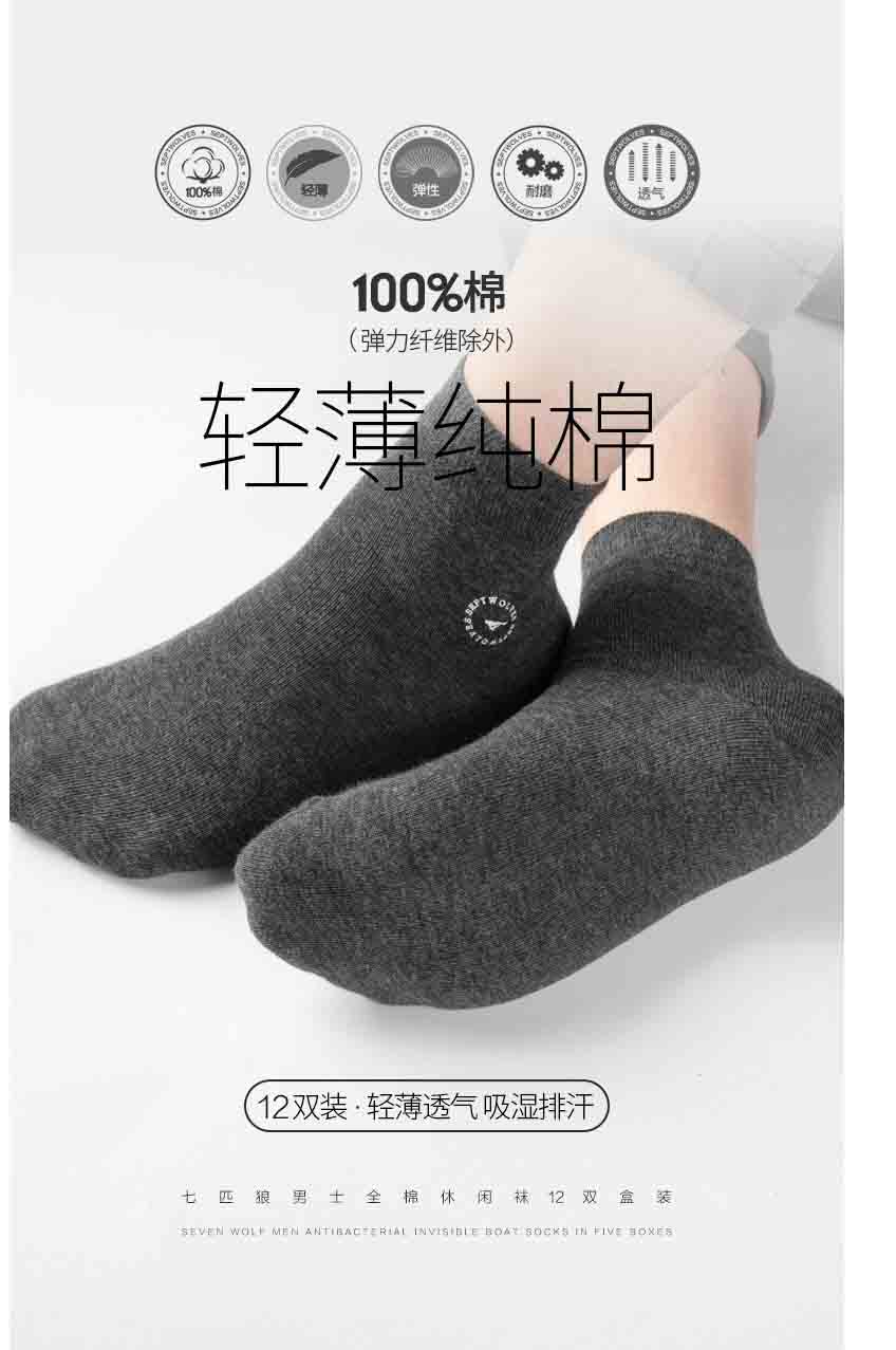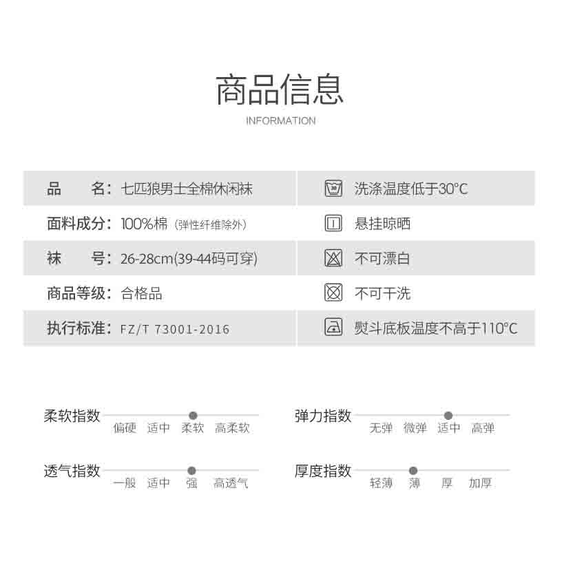 七匹狼 男士全棉休闲袜6双装(混色)20076-6