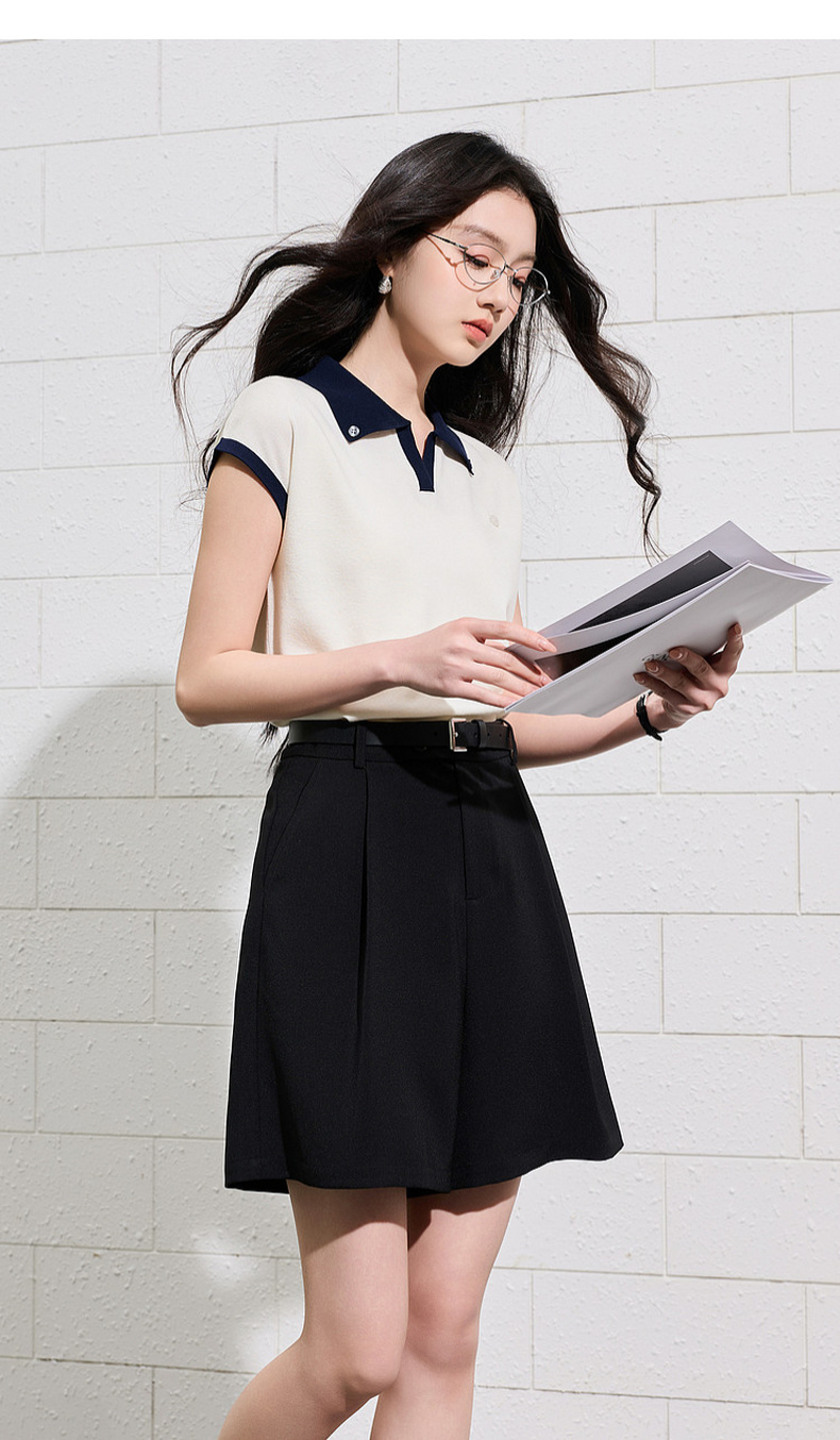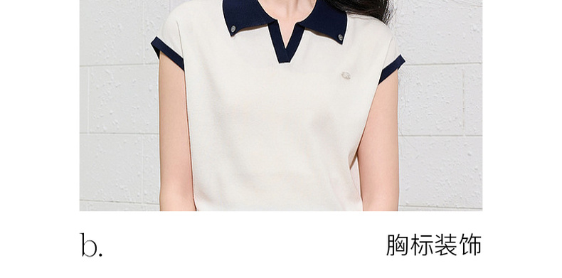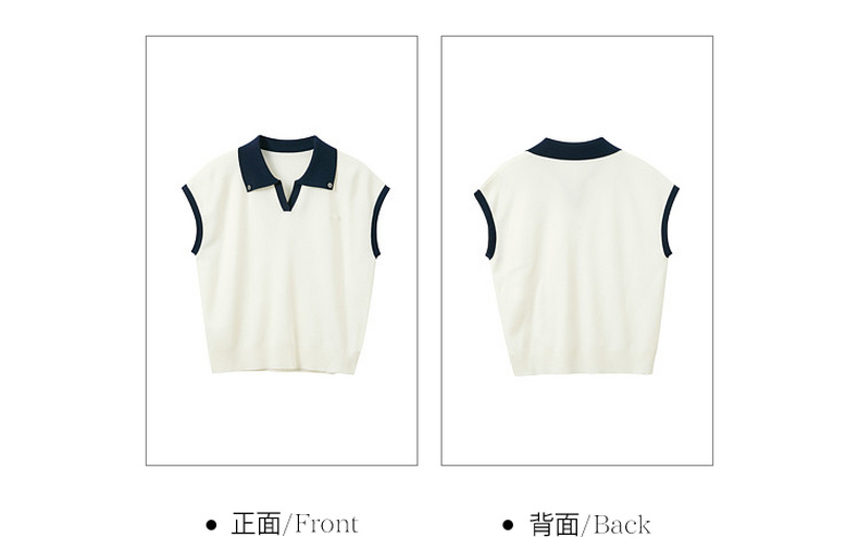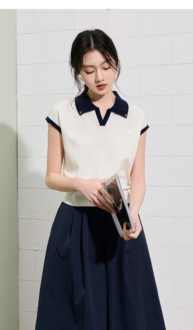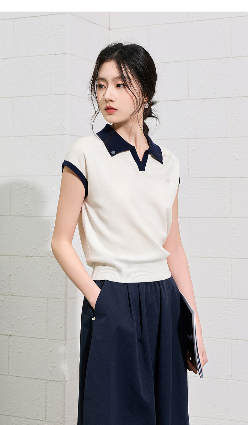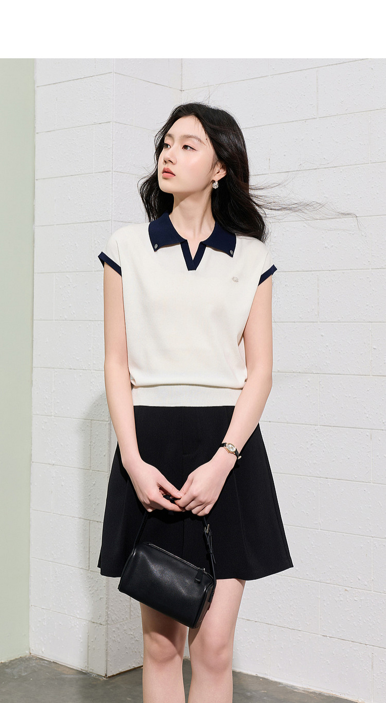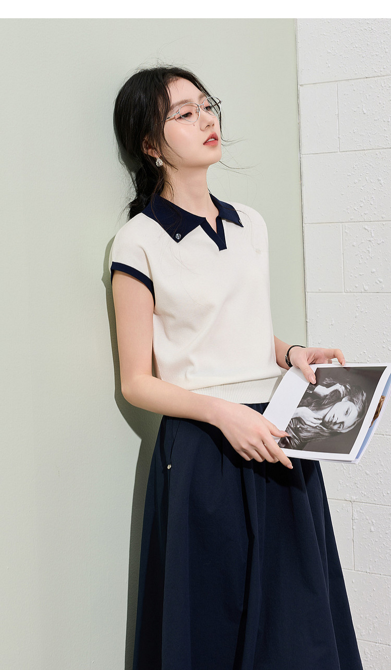 【莱赛尔】三彩2026夏季新款撞色翻领针织衫短袖毛衫套头S