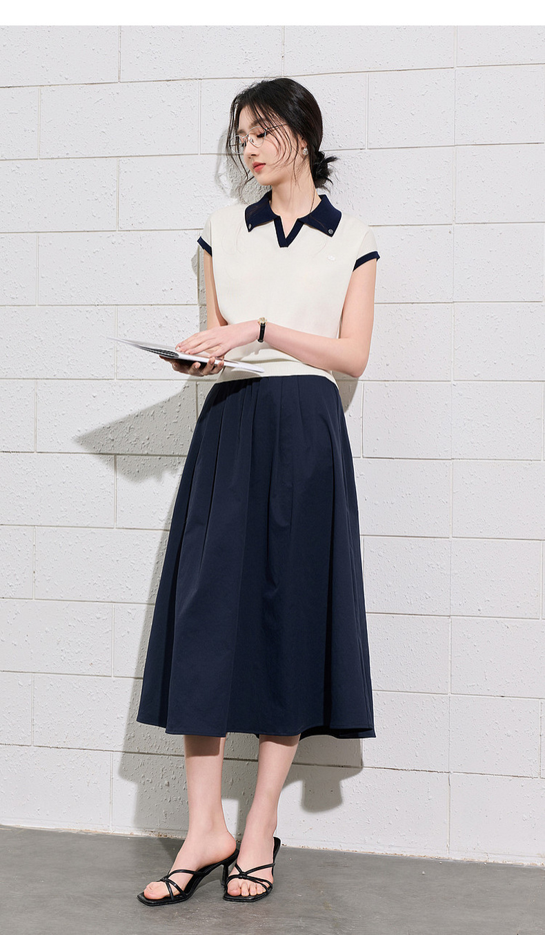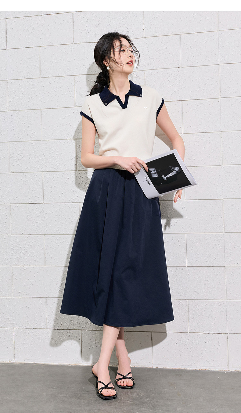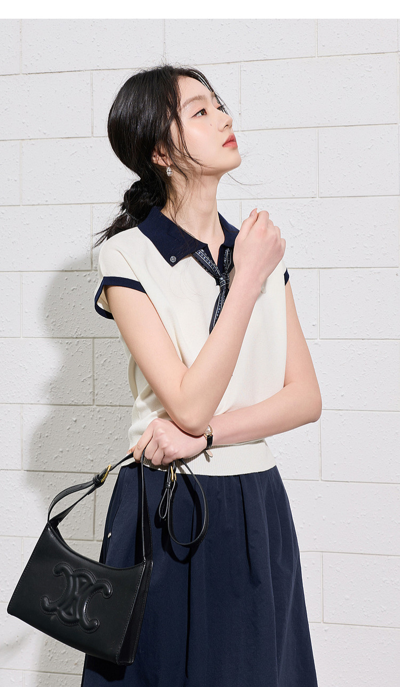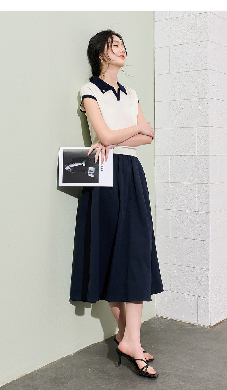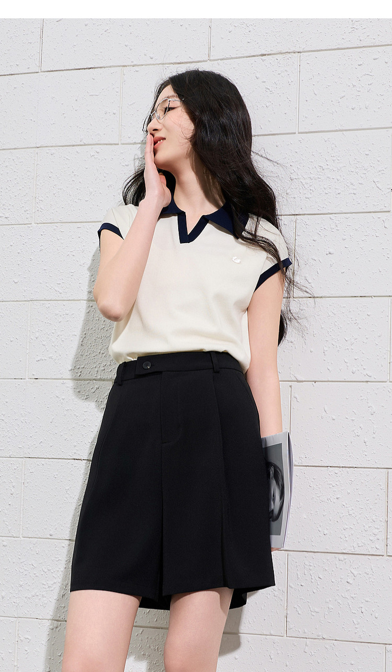 【莱赛尔】三彩2026夏季新款撞色翻领针织衫短袖毛衫套头S