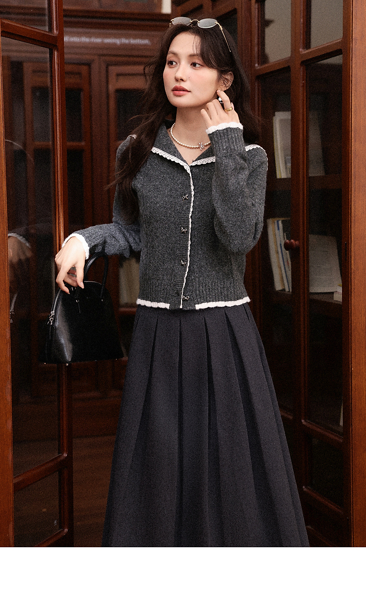 鹿向南「月下手信」灰色披肩长袖针织毛衣女秋冬保暖修身短款上衣