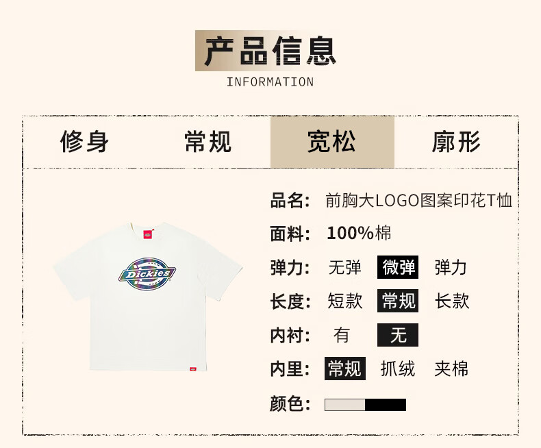 Dickies胸前大LOGO镭射休闲短袖 百搭简约男女同款T恤 DK012183