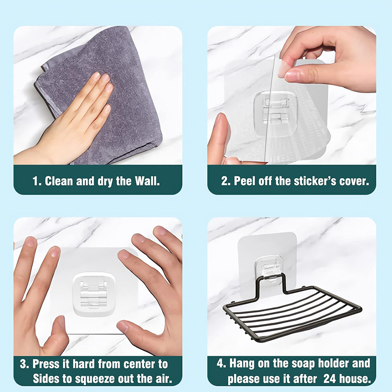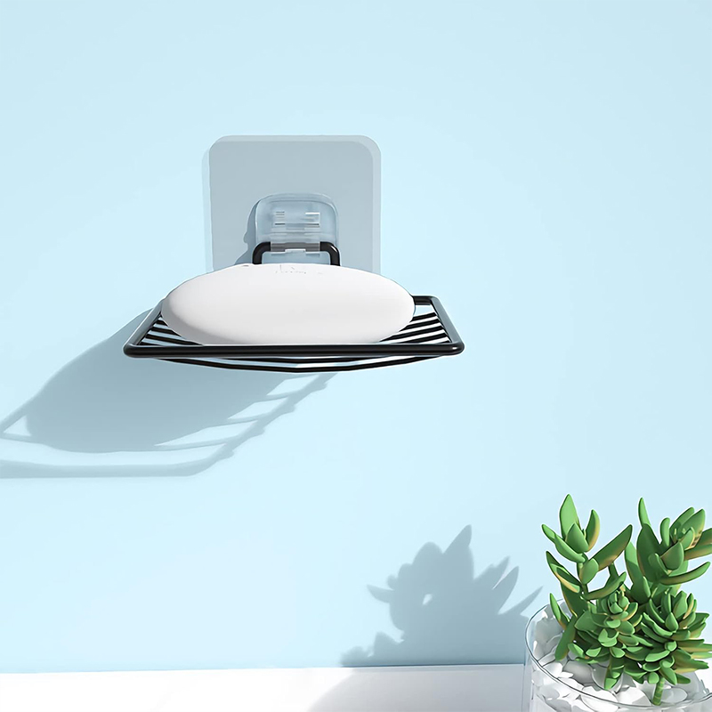 肥皂盒凭借强力胶粘紧密贴合浴室墙面,不会损坏墙面。