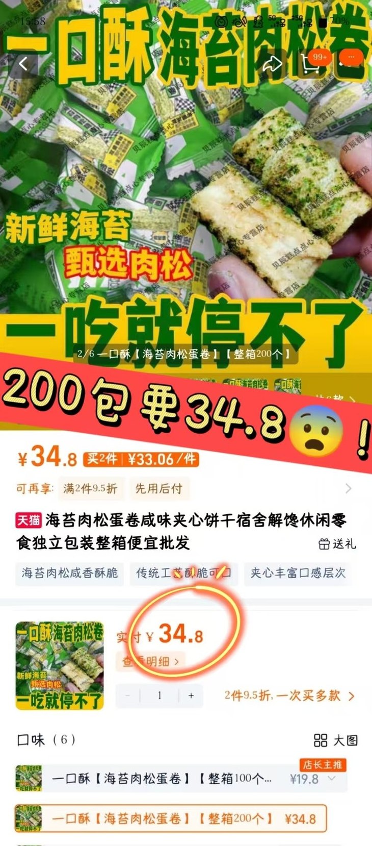 😍谁还没薅❓💰19.9秒杀180包【海苔蛋卷】,一包约一毛钱❗性价比拉满💯鲜脆香酥层层暴击💥好吃到停不下来🤤✅鲜脆海苔➕香甜蛋卷➕咸香肉松,三重美味锁死味蕾,越嚼越香🎉