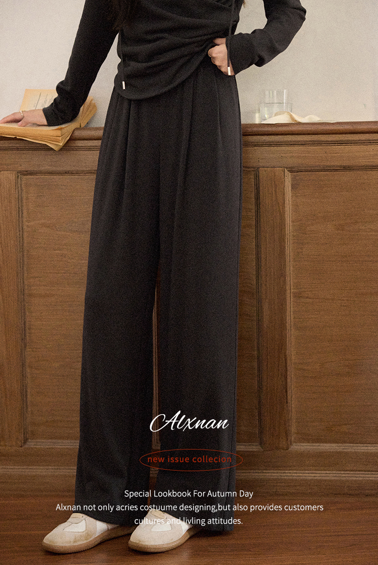 【6折秒杀】鹿向南「澜沧江畔」深灰色百搭休闲阔腿裤秋季新款宽松显瘦裤子女