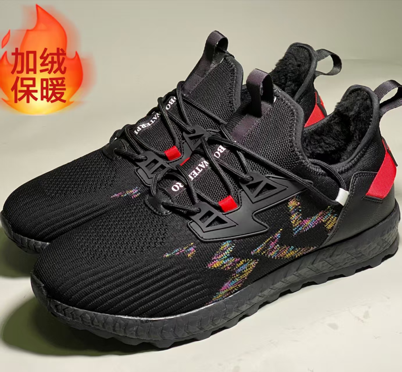 冬季加绒【可泡水!持久型真防水】量橙黑武士防水运动鞋