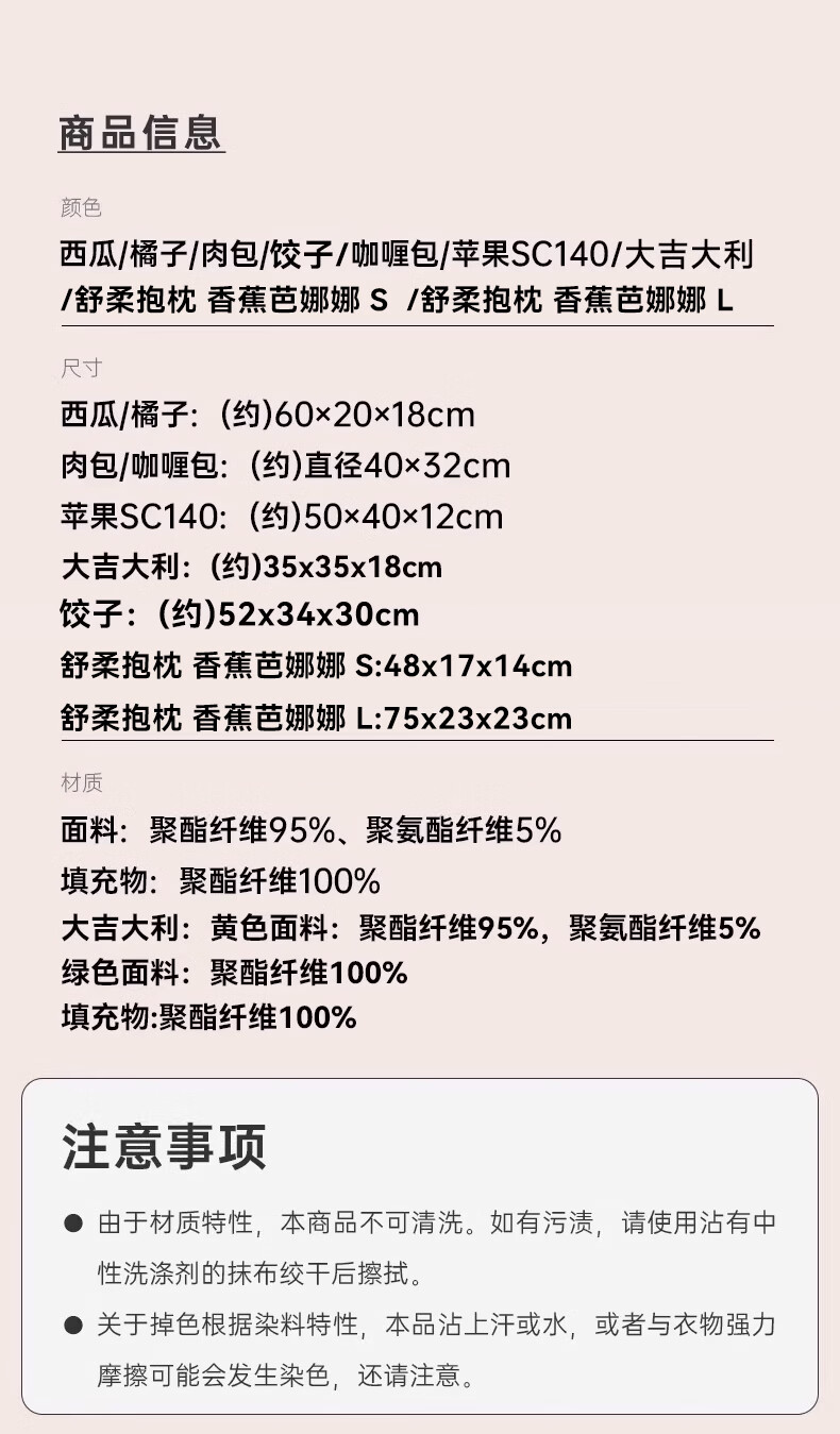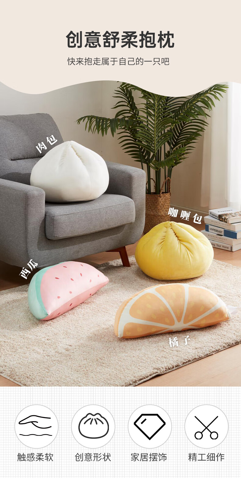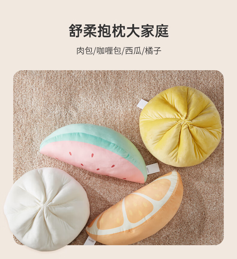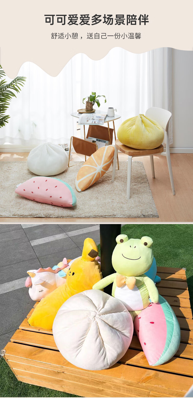 舒柔抱枕靠枕毛绒靠垫沙发抱枕包子香蕉饺子铜锣烧
