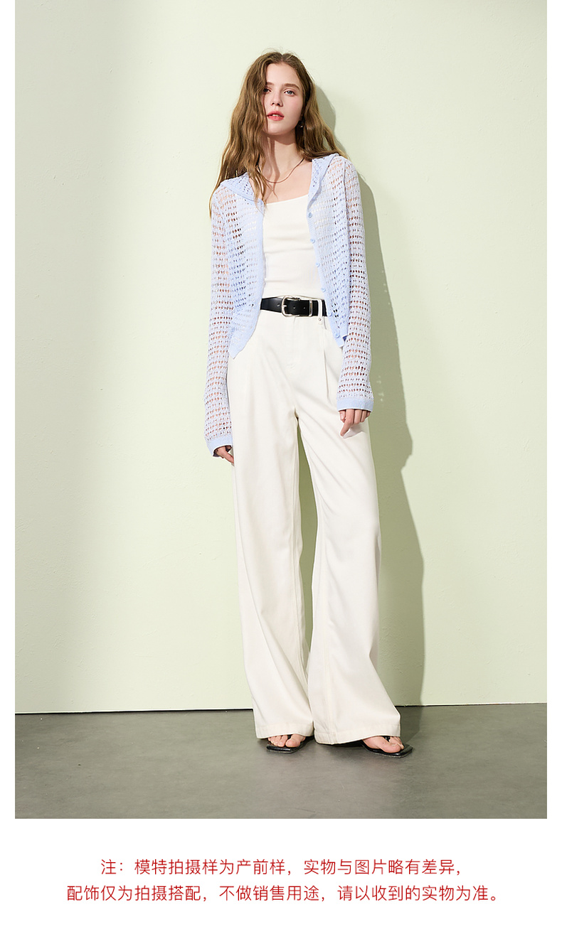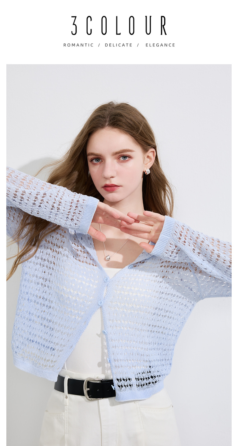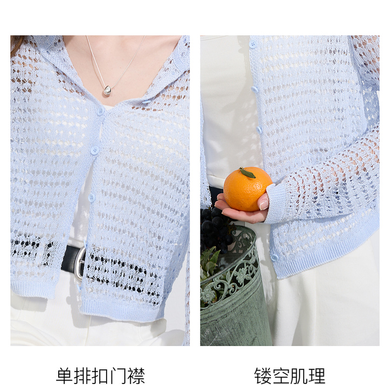 三彩2025夏季新款镂空针织衫连帽开衫外套轻薄罩衫长袖M