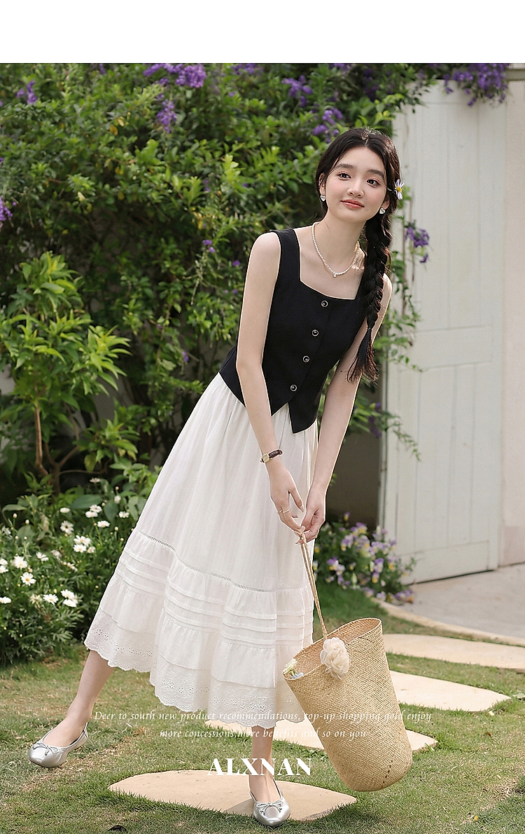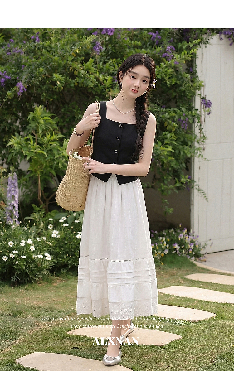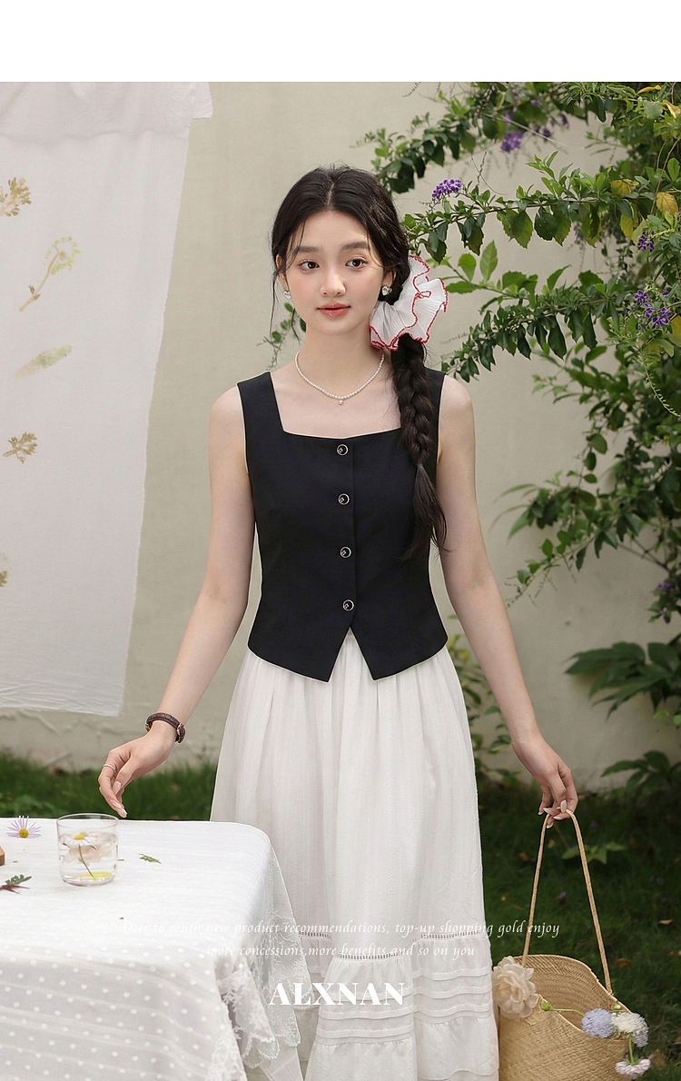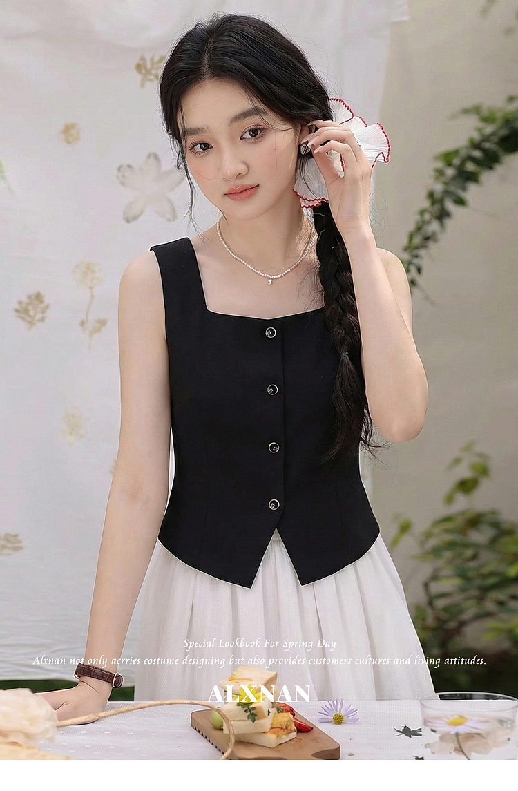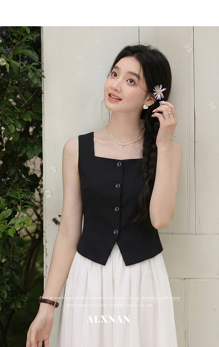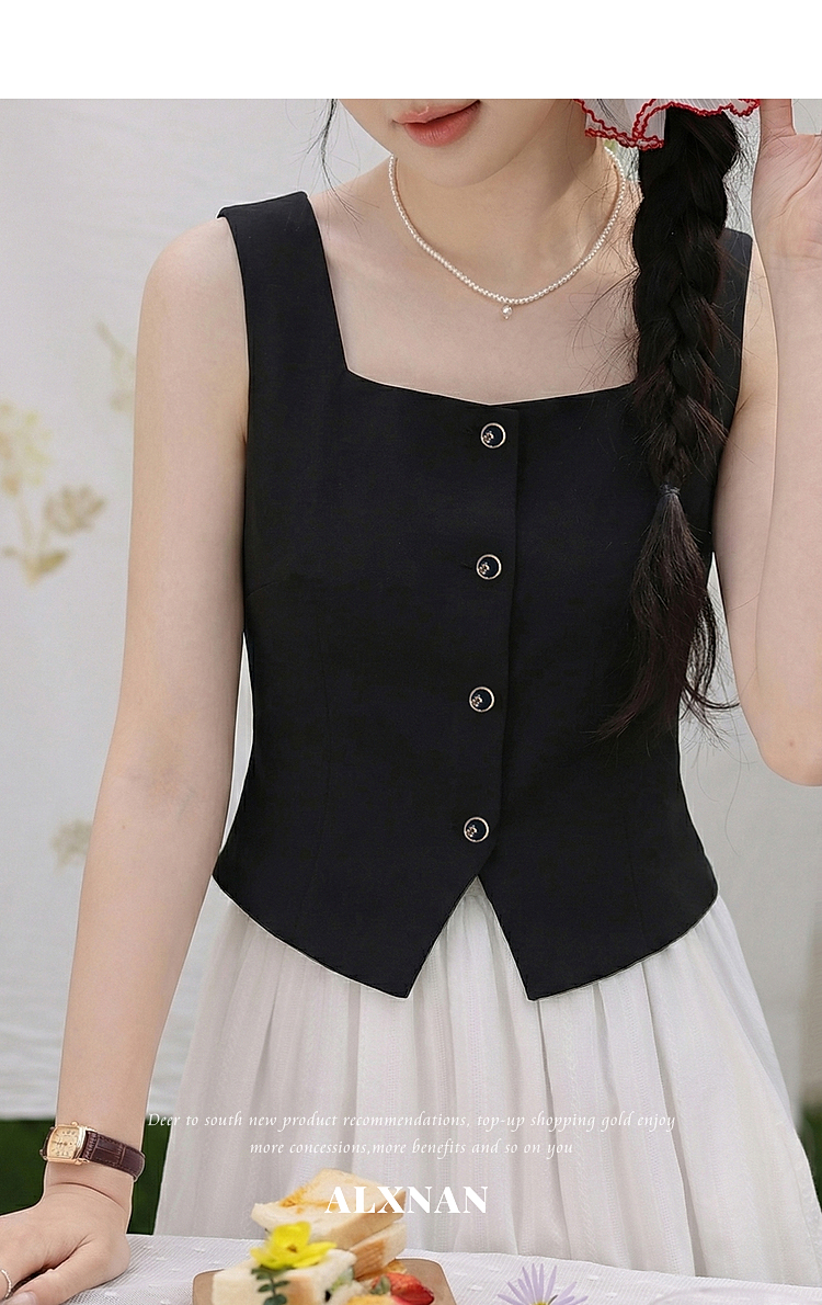 鹿向南「复古黑茶」黑色背心吊带女夏季新款开叉显瘦短款内搭上衣