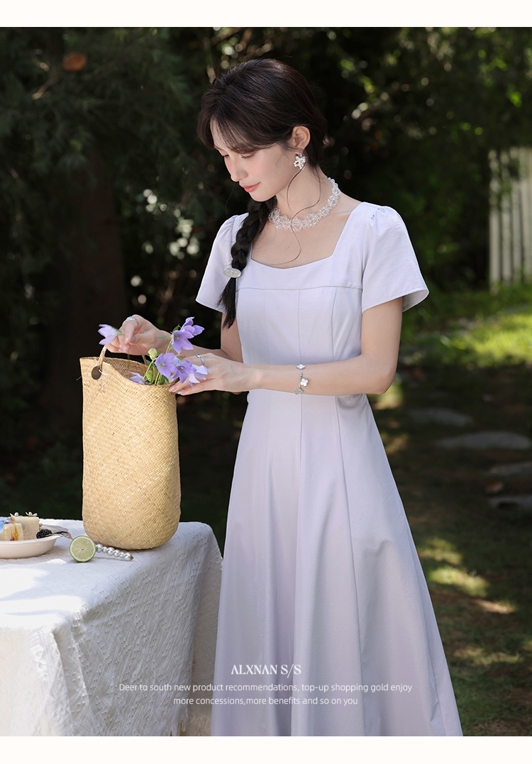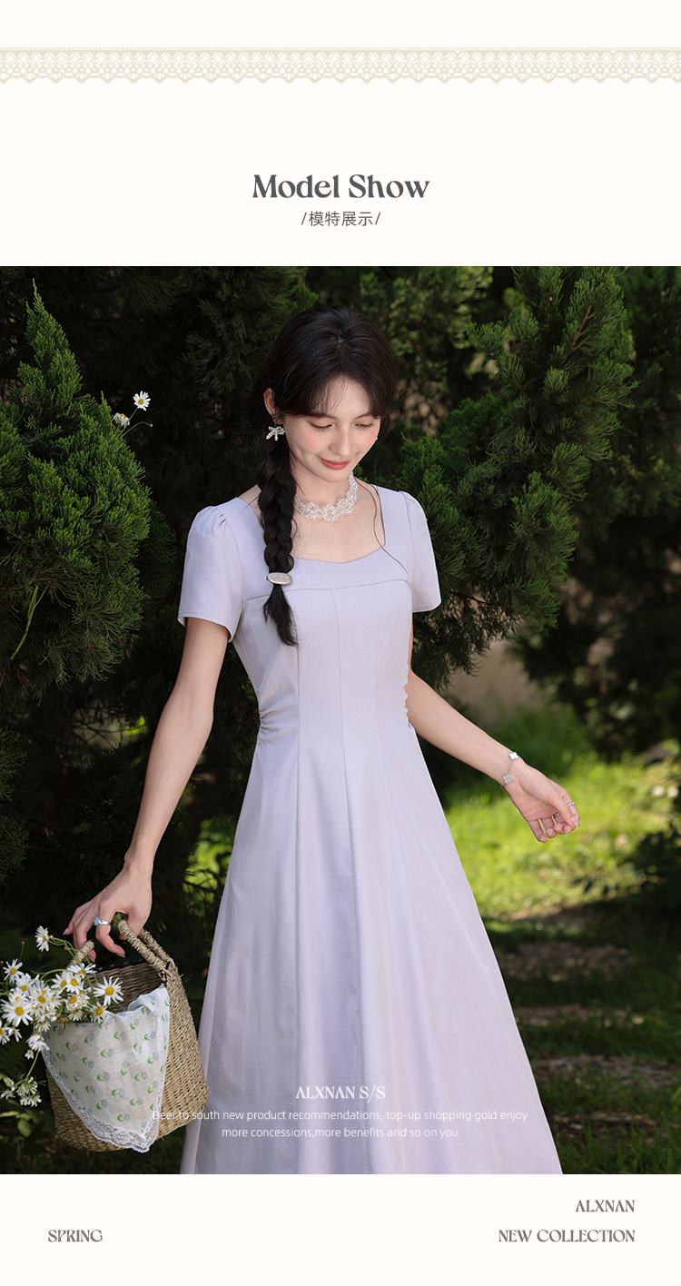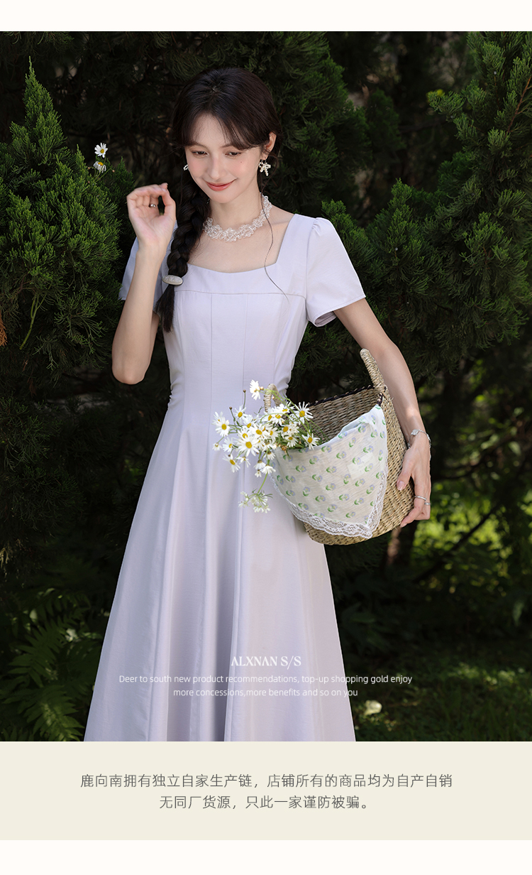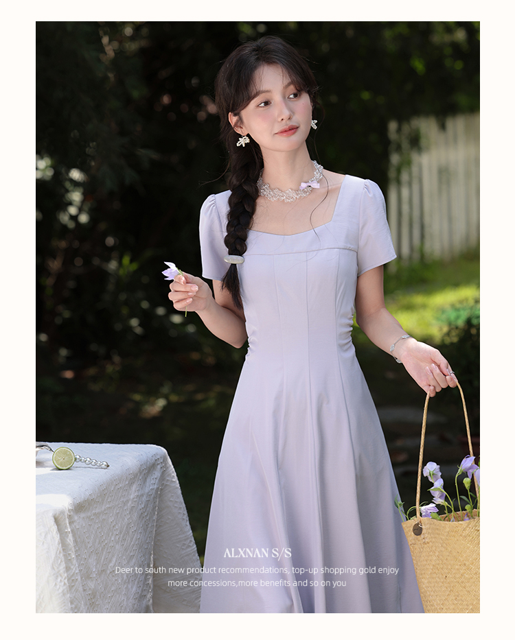 鹿向南「芋泥奶冻」法式浅紫色短袖连衣裙夏季新款时尚气质长裙女