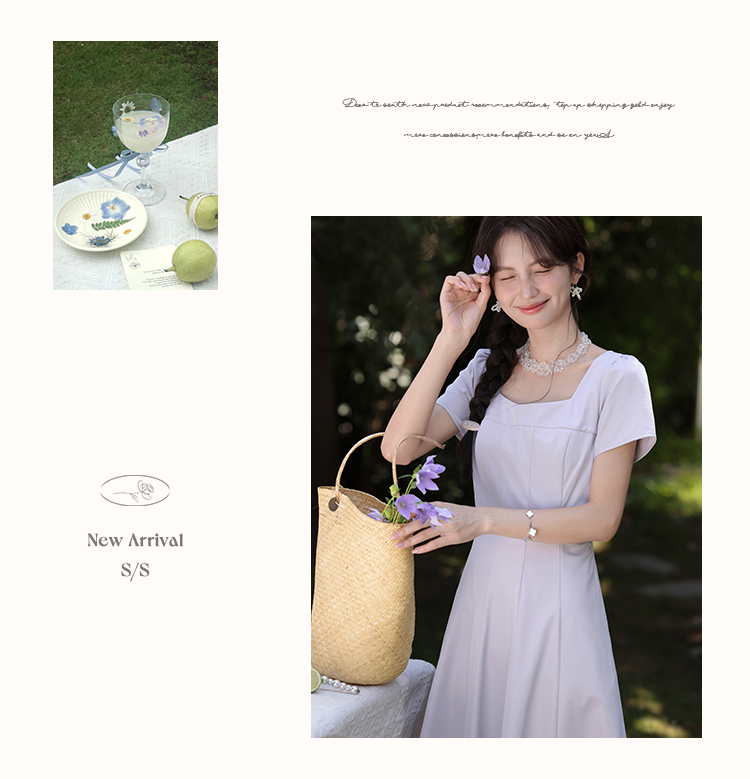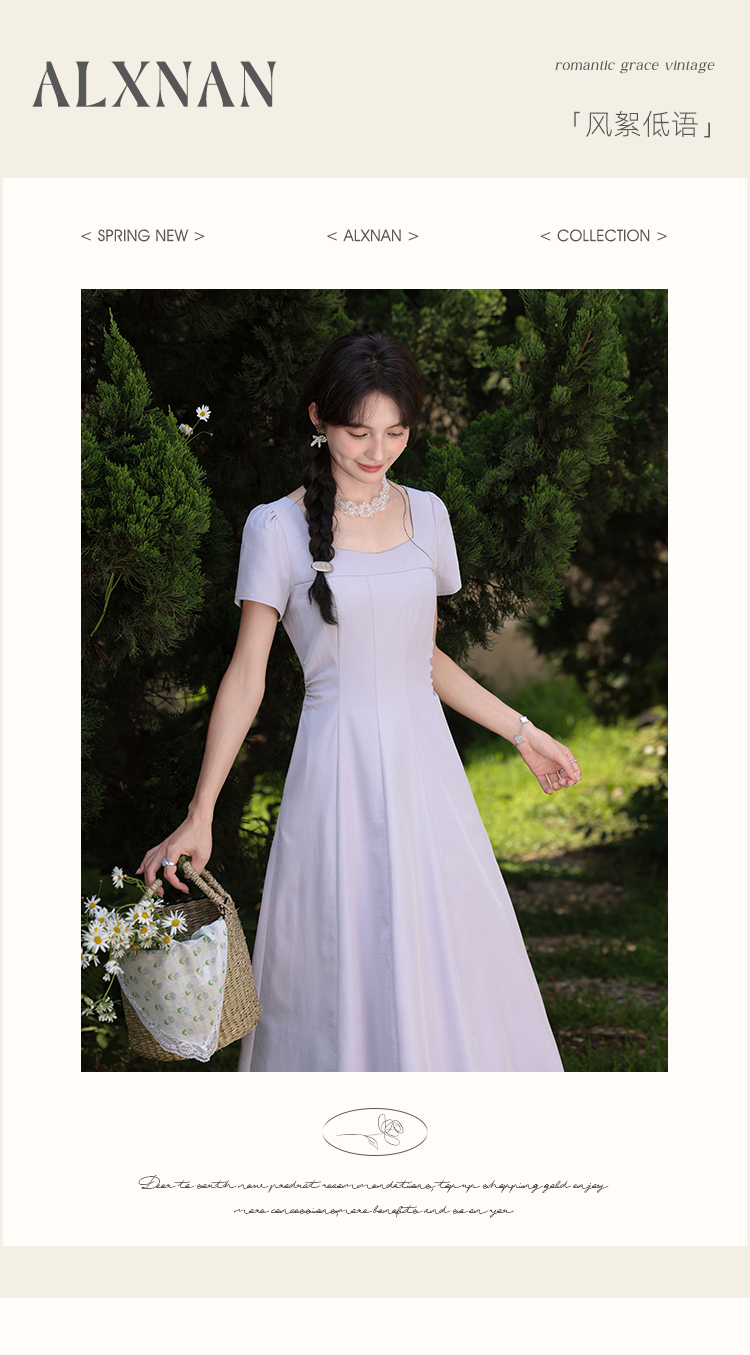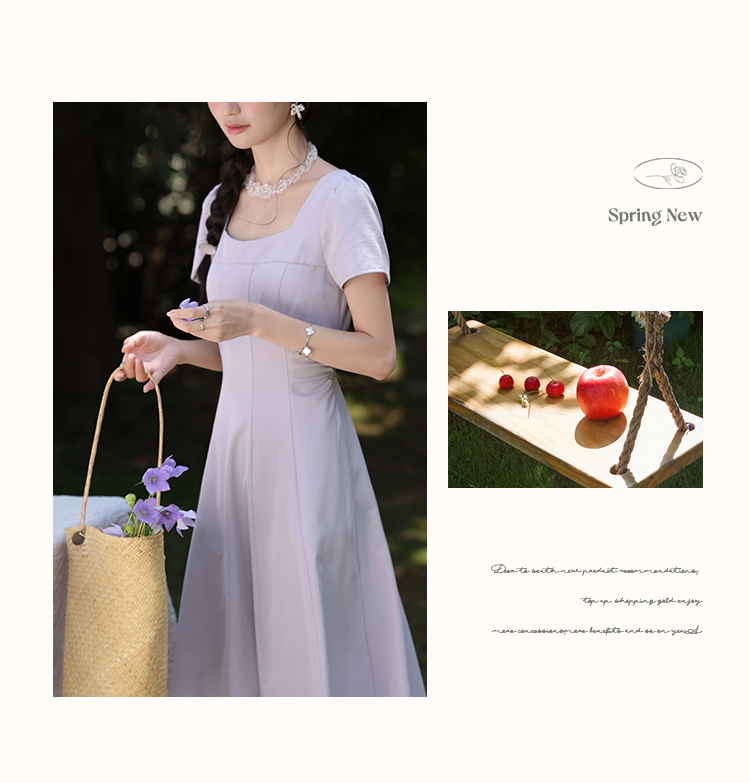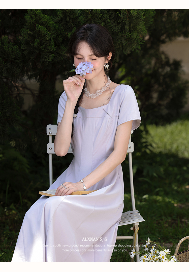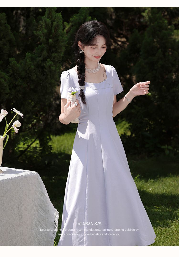 鹿向南「芋泥奶冻」法式浅紫色短袖连衣裙夏季新款时尚气质长裙女