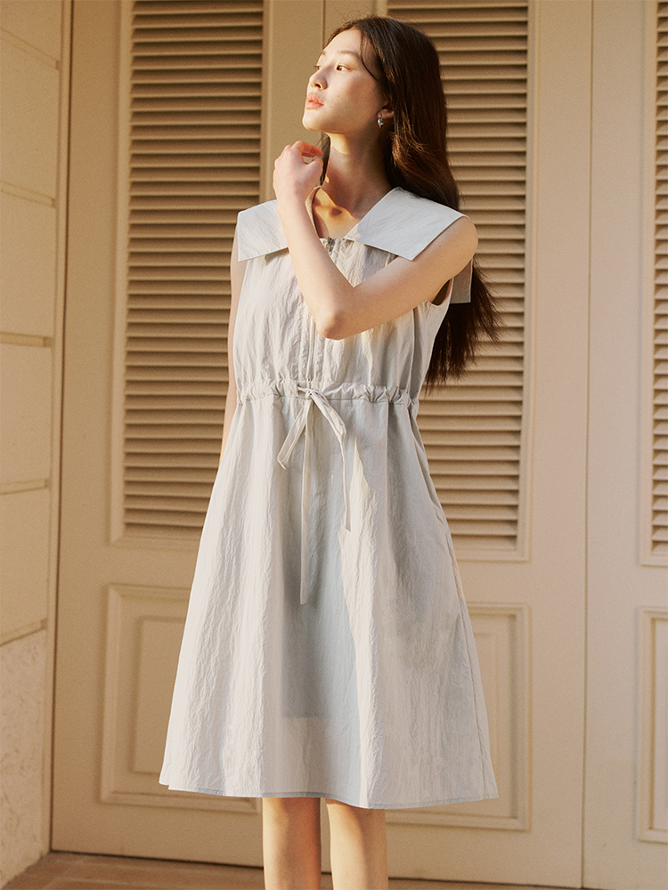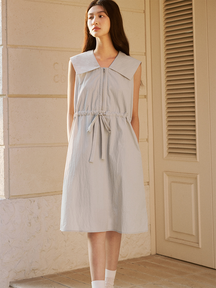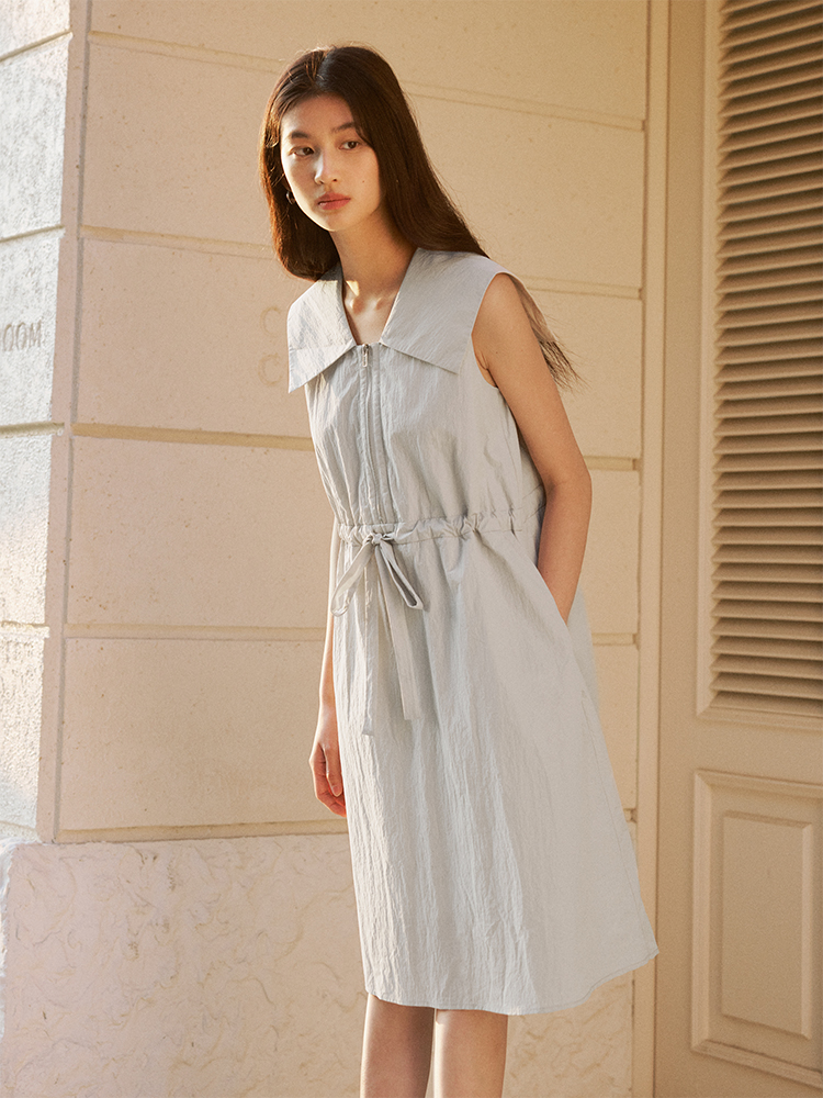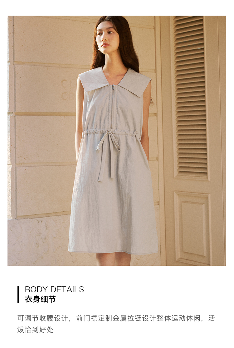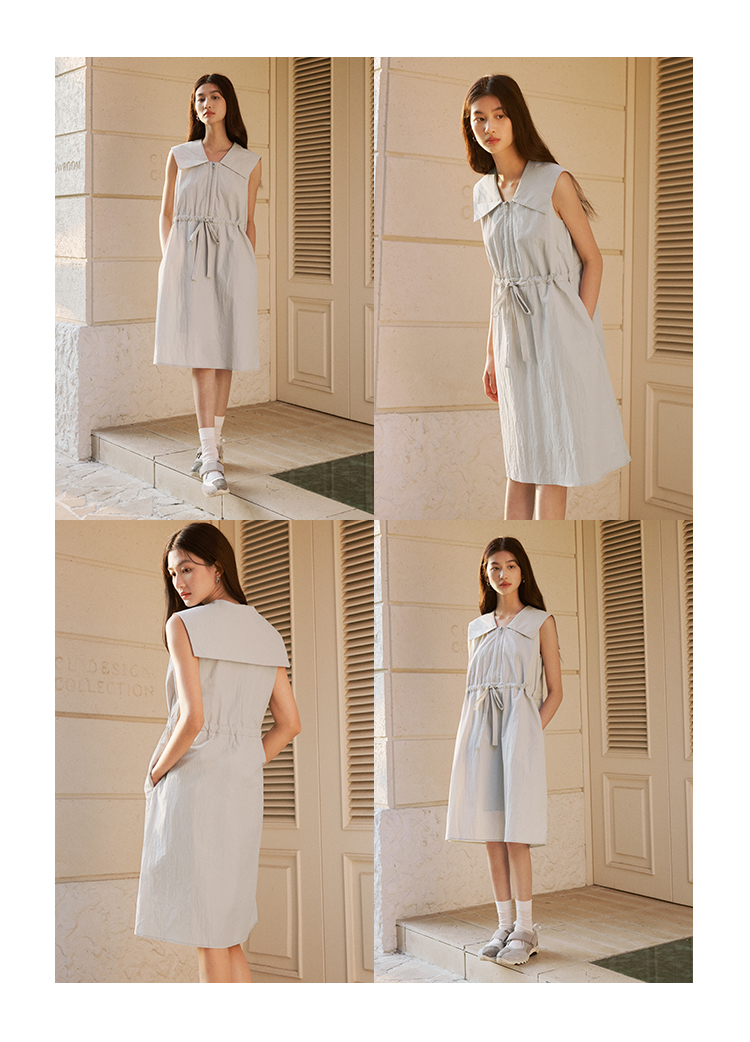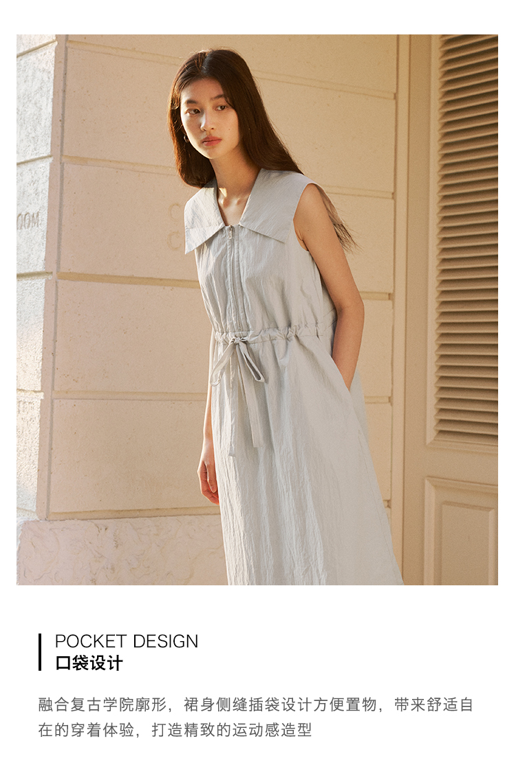 ForPoem 现货 24/SS原创设计大翻领无袖背心裙女纯色运动风休闲连衣裙