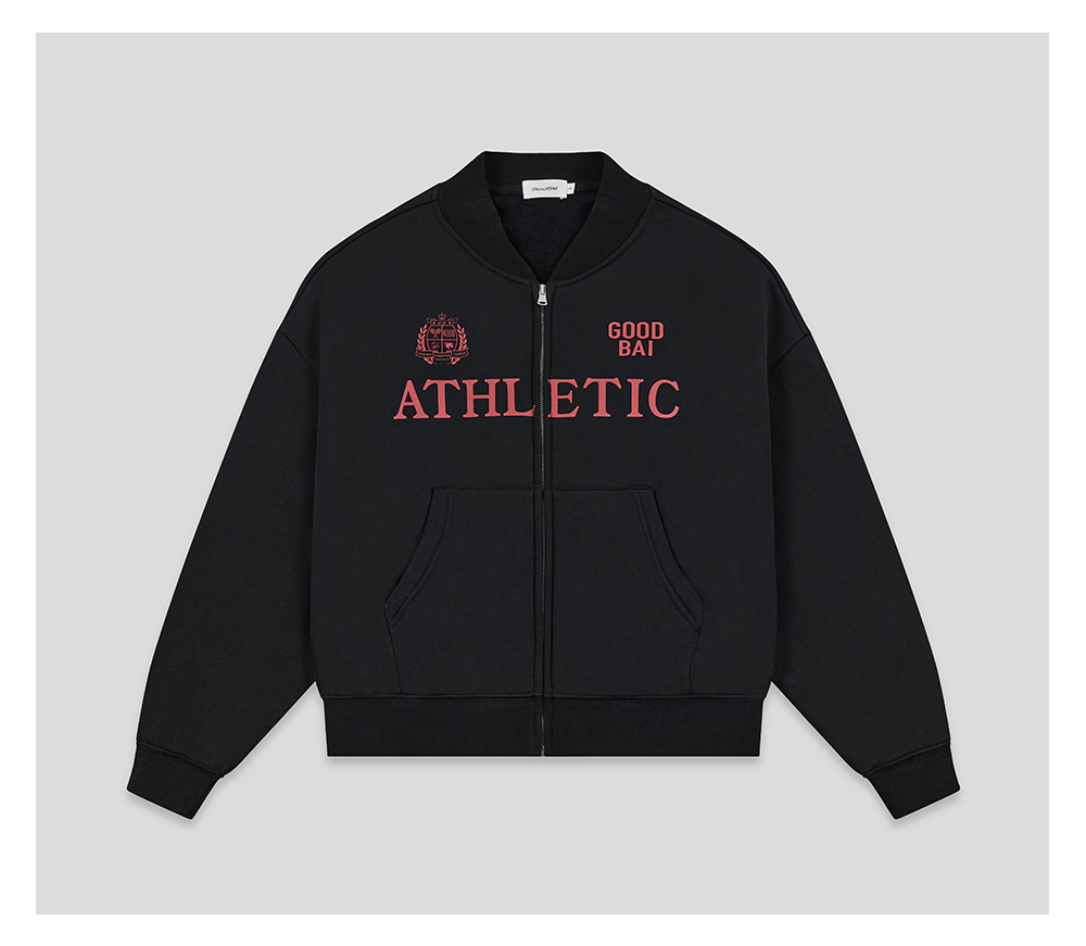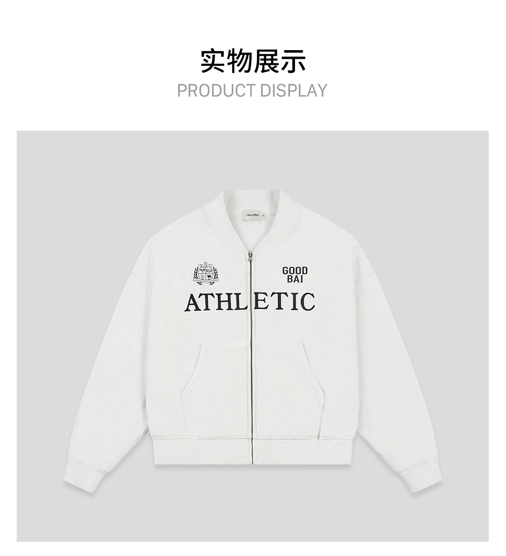 GOODBAI ATHLETIC粗体logo印花棒球领拉链长袖卫衣外套