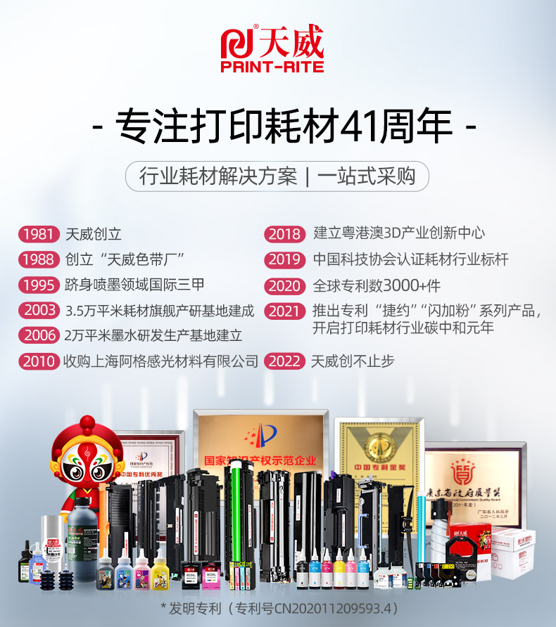 - 天威耗材始于1981年,主营硒鼓、墨盒、色带等办公耗材商品,中国知名通用打印耗材倡导者和生产商。