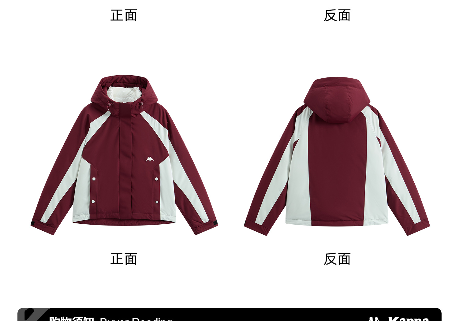 Kappa卡帕背靠背运动羽绒服女2025新款冬季户外保暖连帽工装外套K0F82YY49