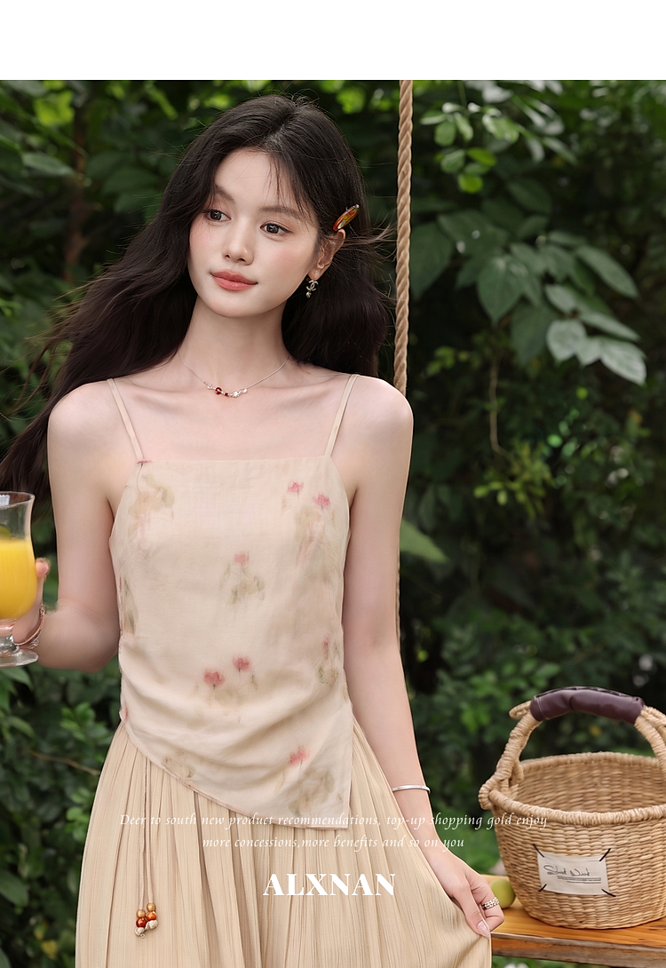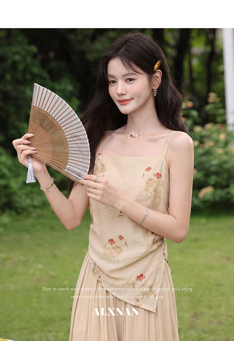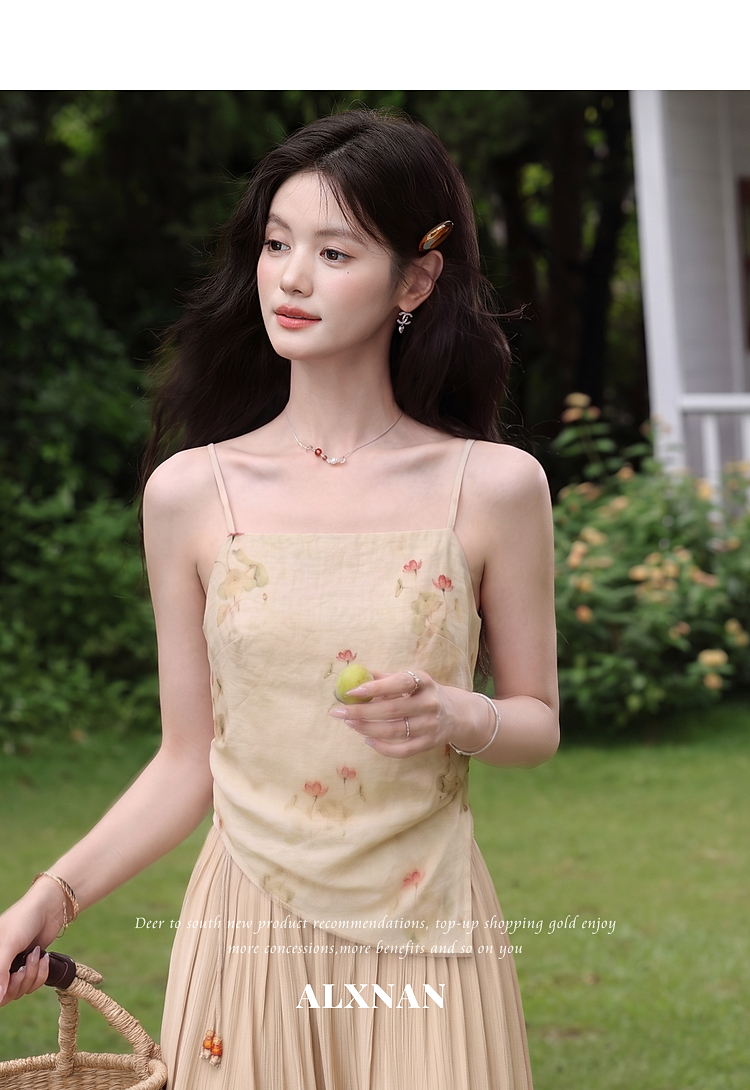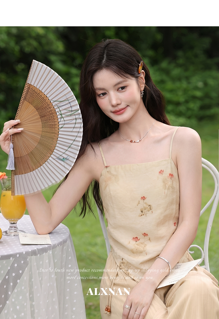 鹿向南【0417/20:00新品前1小时7折限量100件】国风气质杏色背心