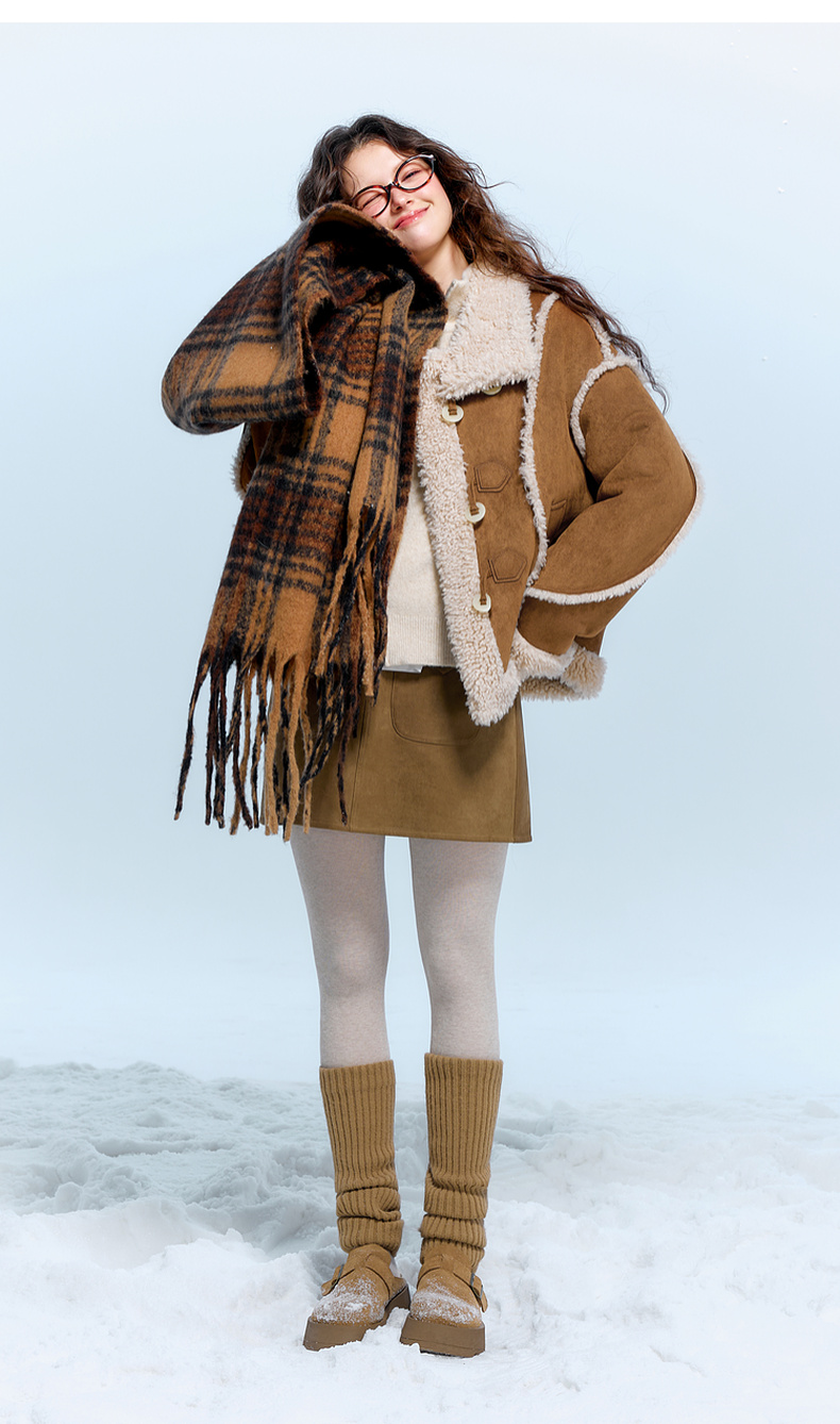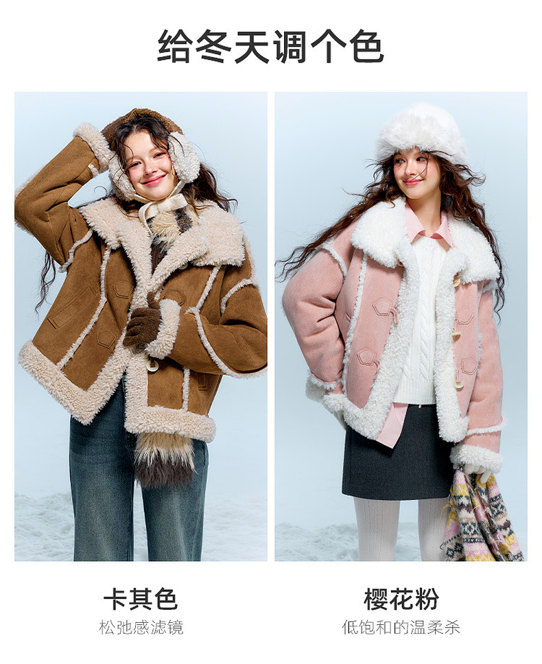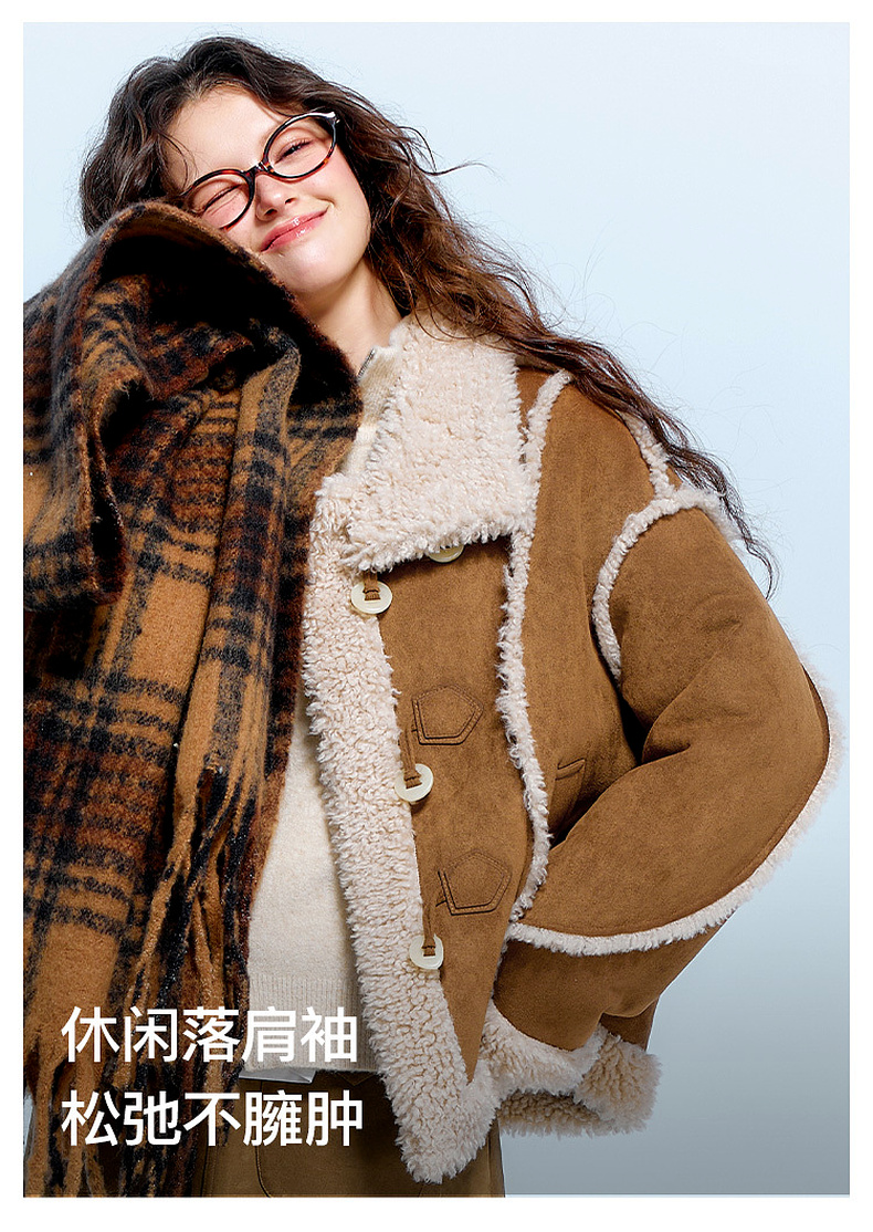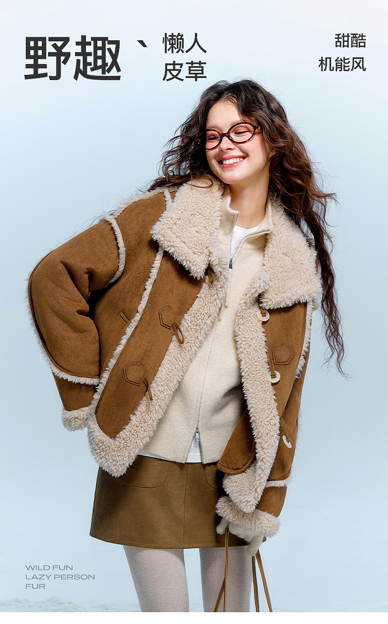 【可机洗懒人皮草】三彩独醒2025冬季新款仿麂皮环保毛毛外套F