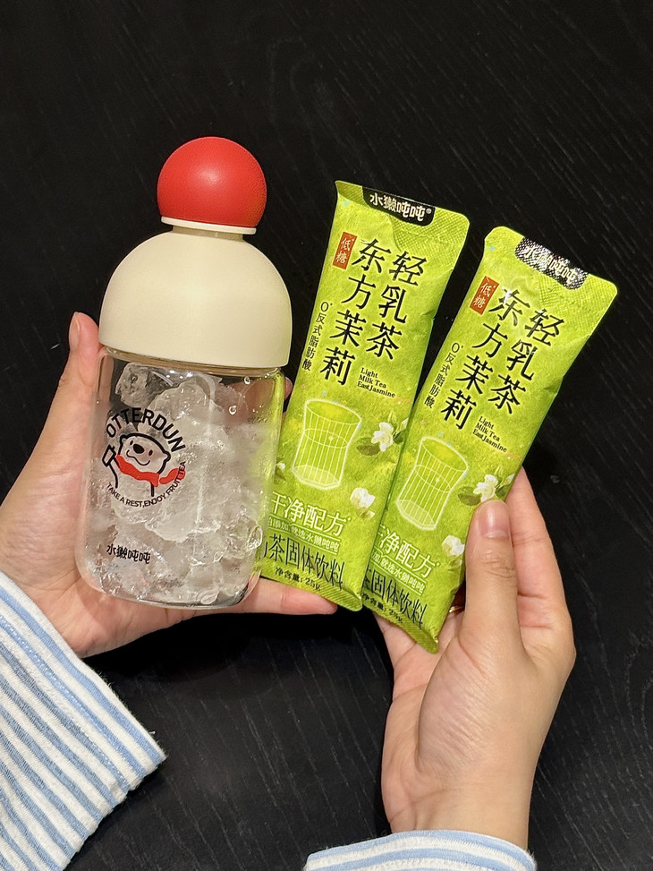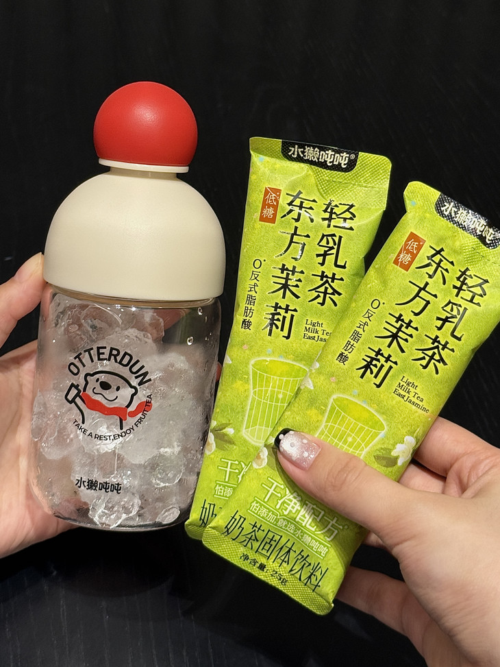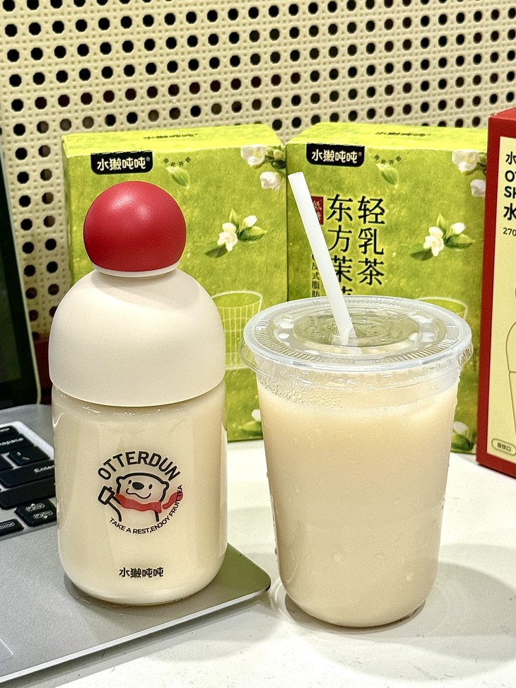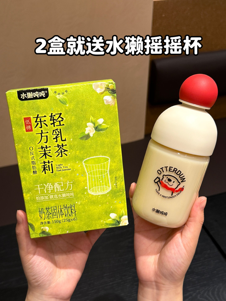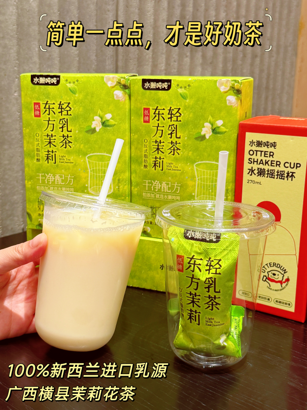 「水獭吨吨东方轻乳茶」✅100%纯牛乳源 ✅100%原叶茶东方茉莉轻乳茶&东方木兰轻乳茶,经典好喝 49到手12杯还送高硼硅玻璃的水獭摇摇杯‼️