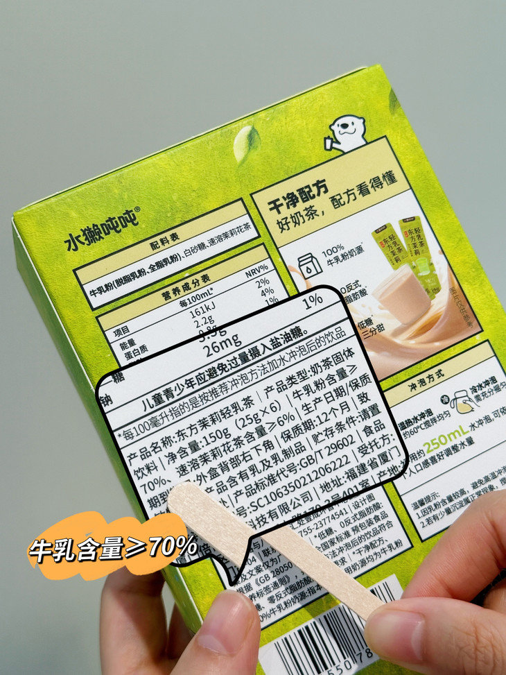 产品信息 【产品名】水獭吨吨东方茉莉轻乳茶/东方木兰轻乳茶 【规格】25g*6条/盒 【生产日期】2025年8-9月 【保质期】12月 【产地】厦门 【发货地】浙江杭州 【发货快递】中通、申通 【发货时效】48小时 【不发货地区/加运费区域】新疆、西藏、内蒙古、青海、甘肃、宁夏加8元运费,港澳台不发货,其他地区包邮 【关于售后】 收货7天内支持未拆封退货退款,如有产品问题麻烦提供生产日期及产品图片 支持未签收拒收退款,物流有退回记录方可处理退款