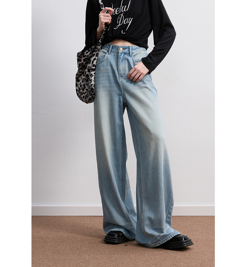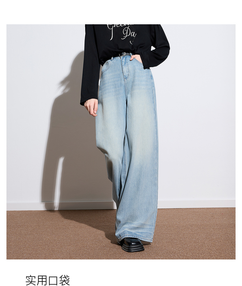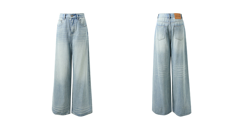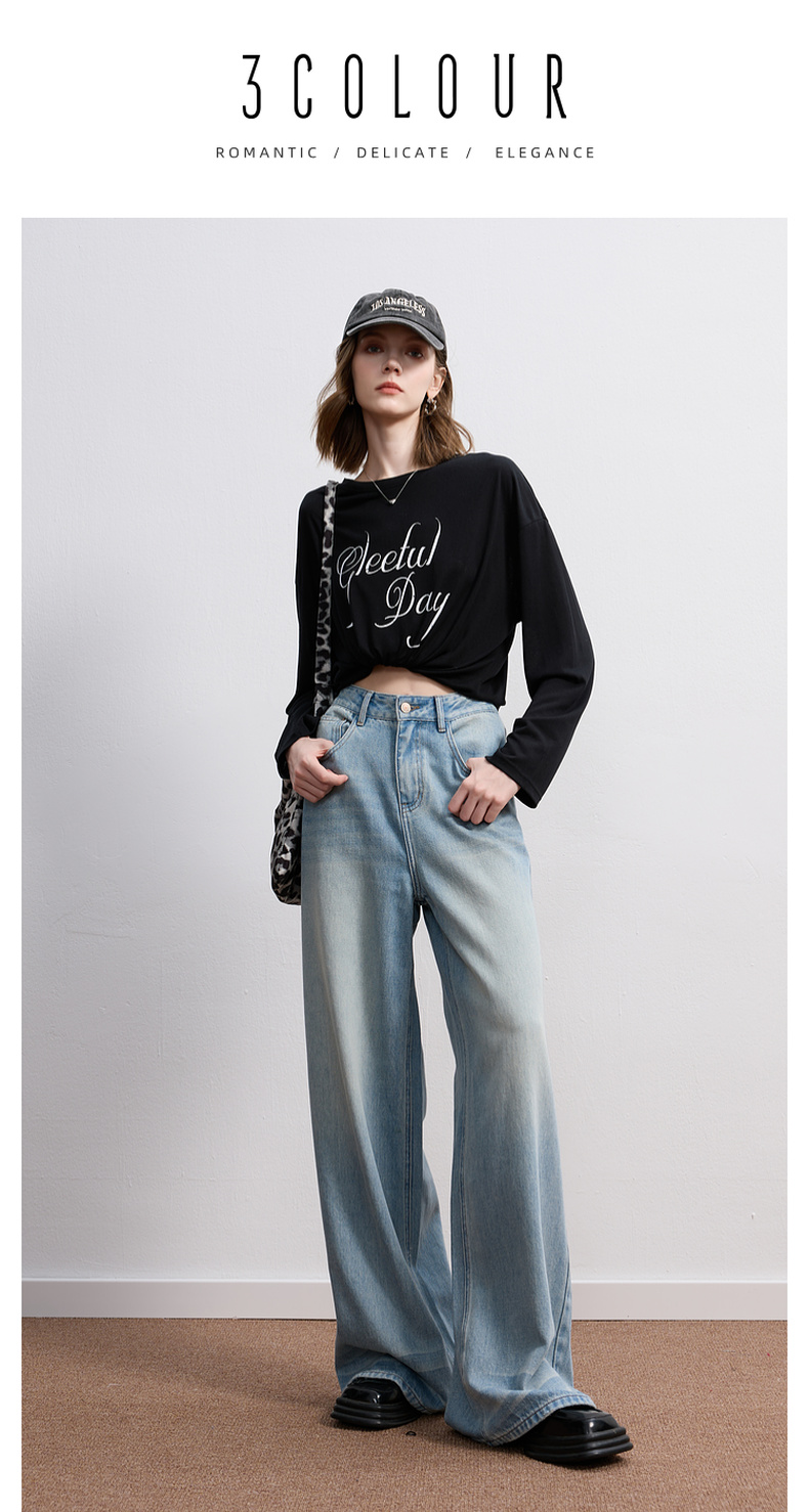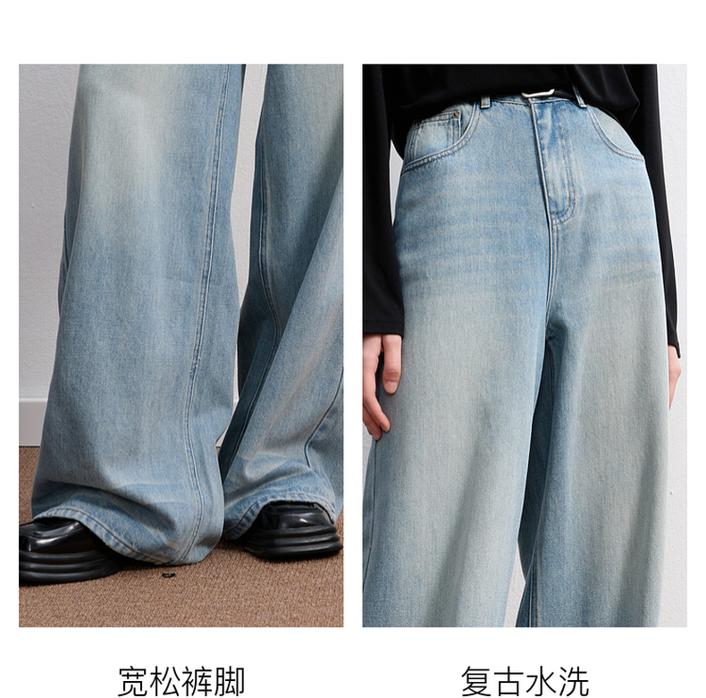 【100棉】三彩2025秋季新款牛仔裤宽松阔腿裤水洗长裤M