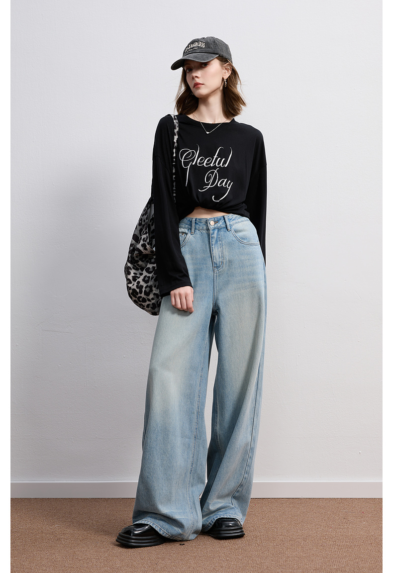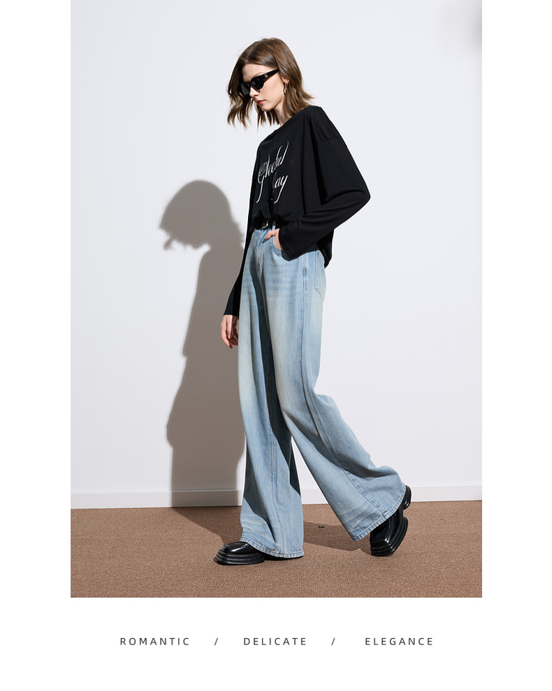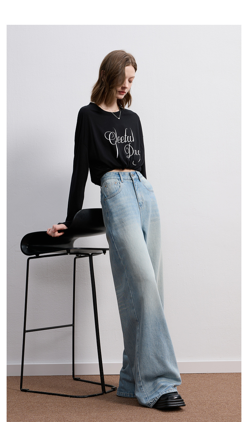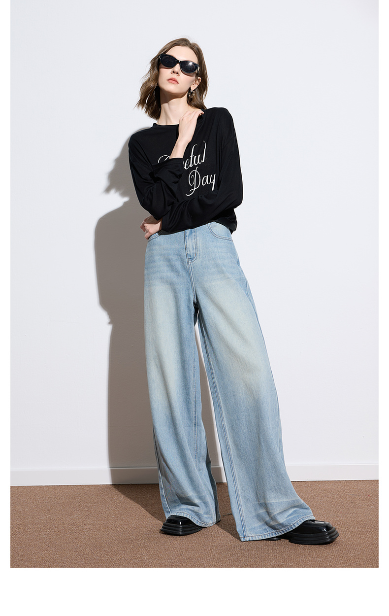 【100棉】三彩2025秋季新款牛仔裤宽松阔腿裤水洗长裤M