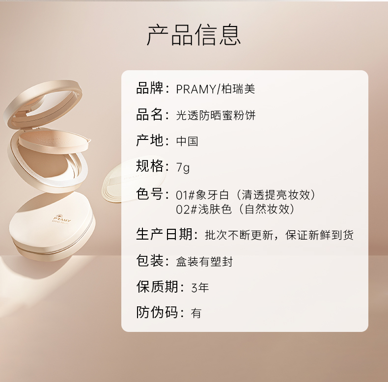PRAMY/柏瑞美 光透防晒蜜粉饼 春夏限定款 7g