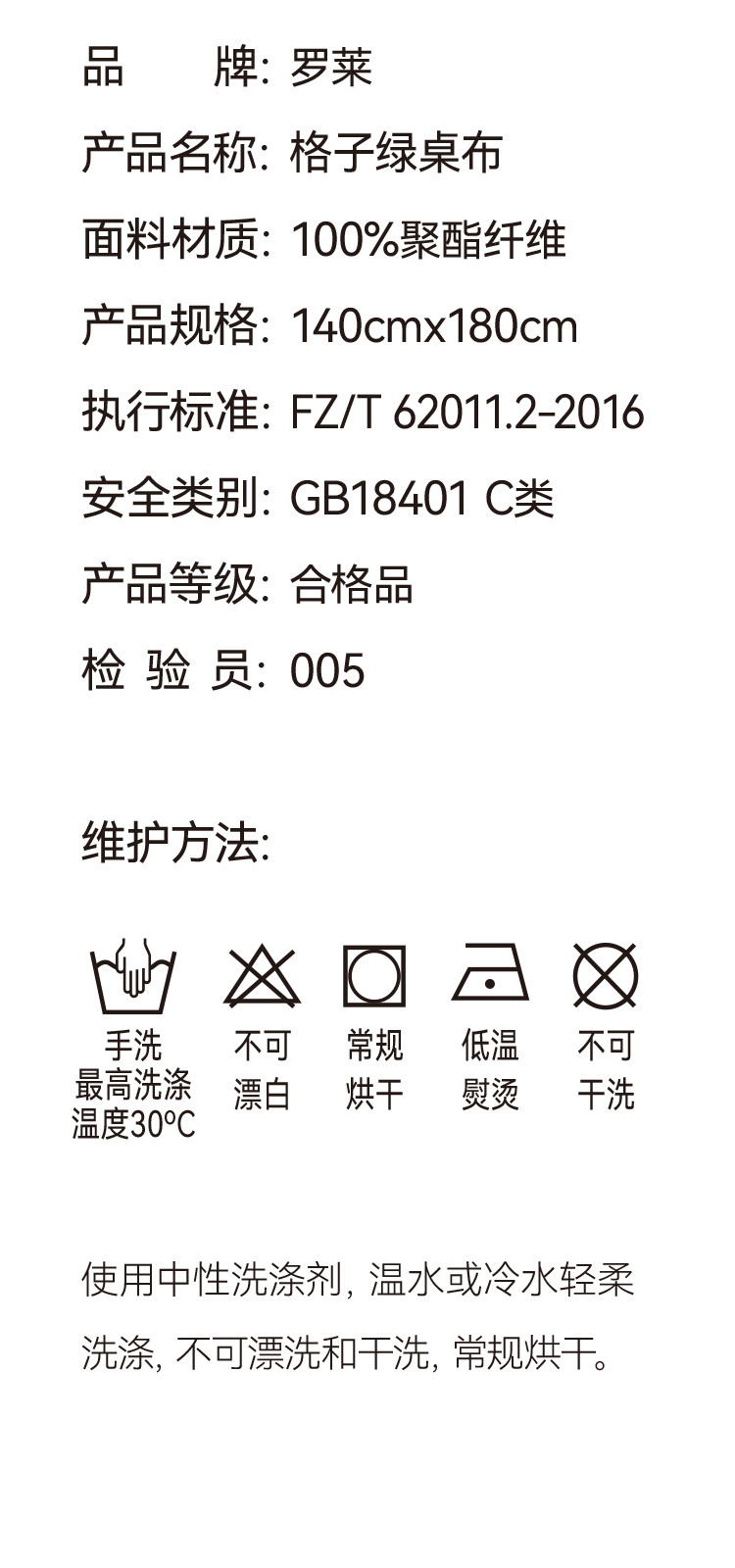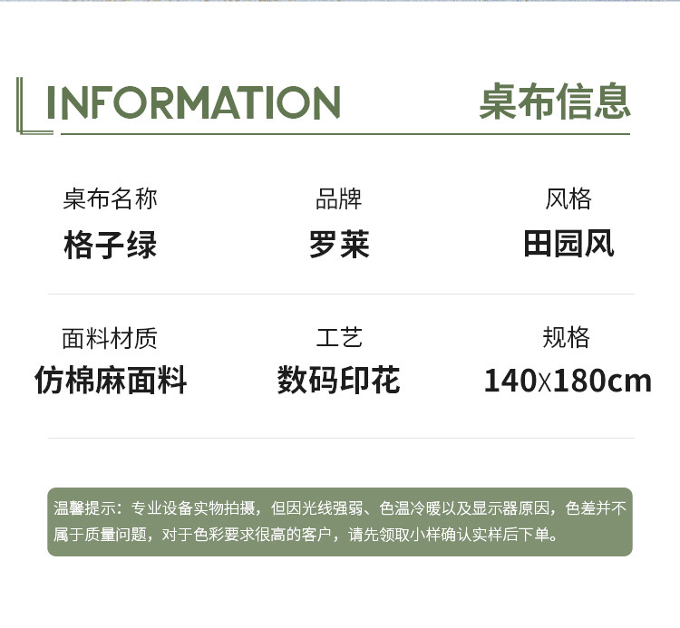 罗莱软装 格子绿桌布 140X180cm