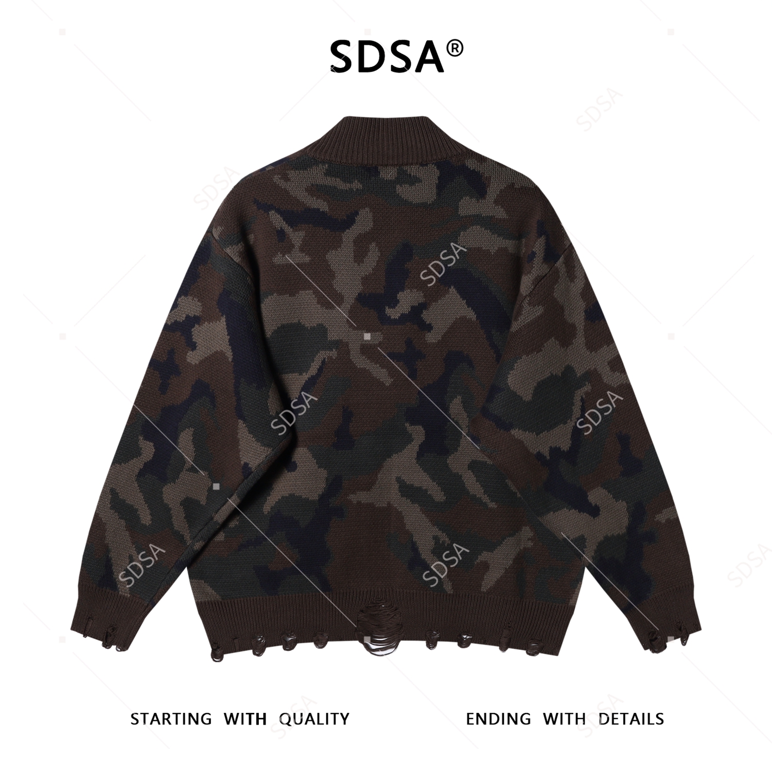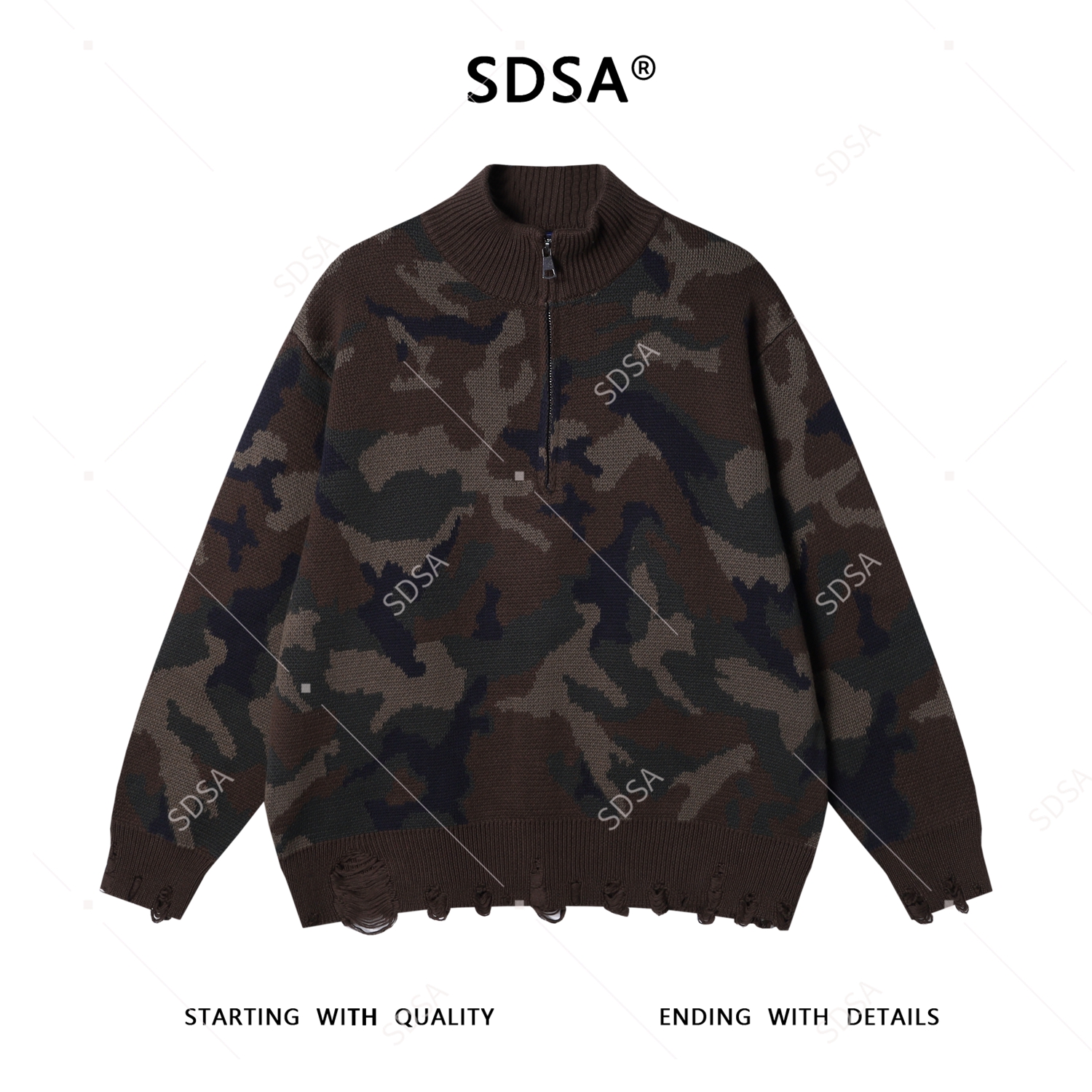 88111SDSA男士秋冬新款痞帅男装潮牌迷彩半拉链立领针织衫百搭毛衣宽松
